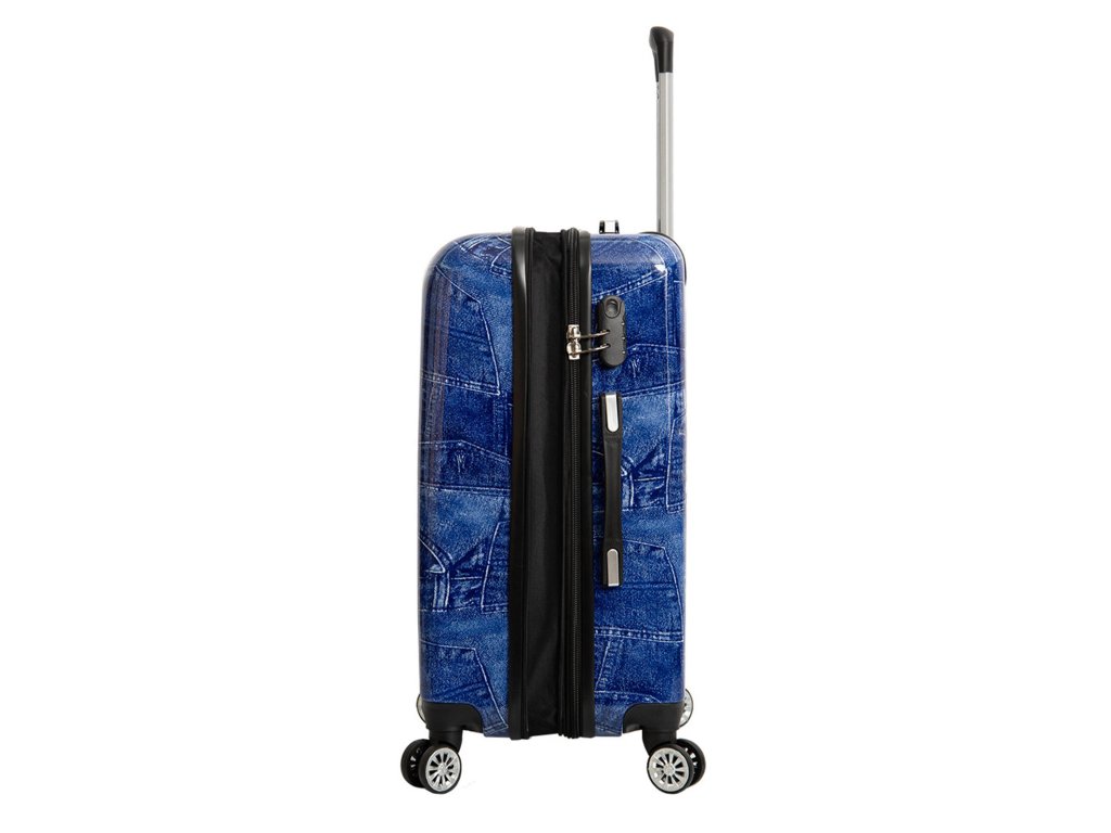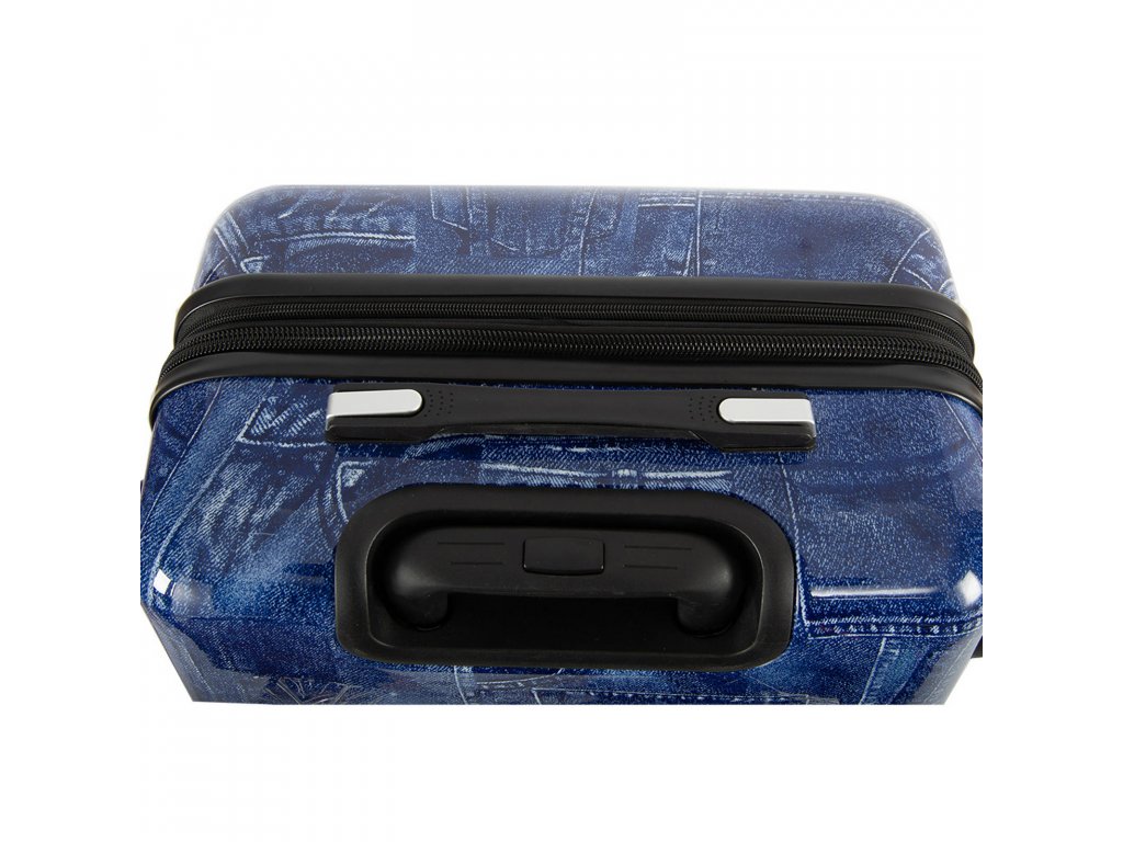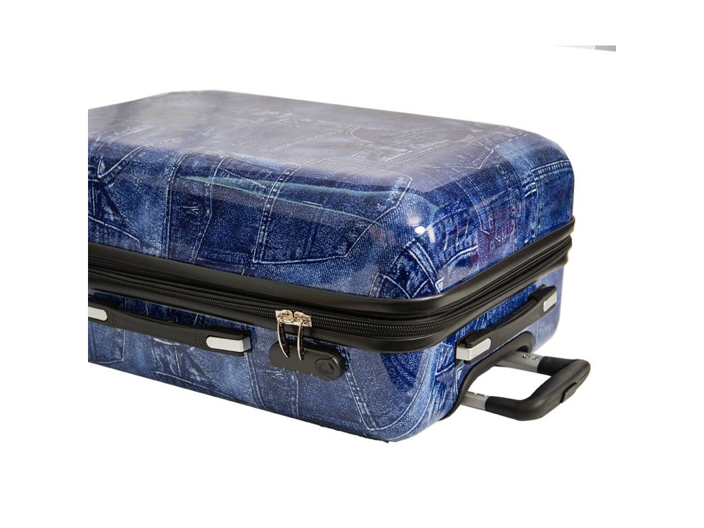 Cestovní kufr 66 cm v moderním designu francouzské značky Madisson v modré barvě s jeans motivem. Má jedinečný vzhled, který jej odlišuje od ostatních zavazadel svým neobvyklým a barevným potiskem.