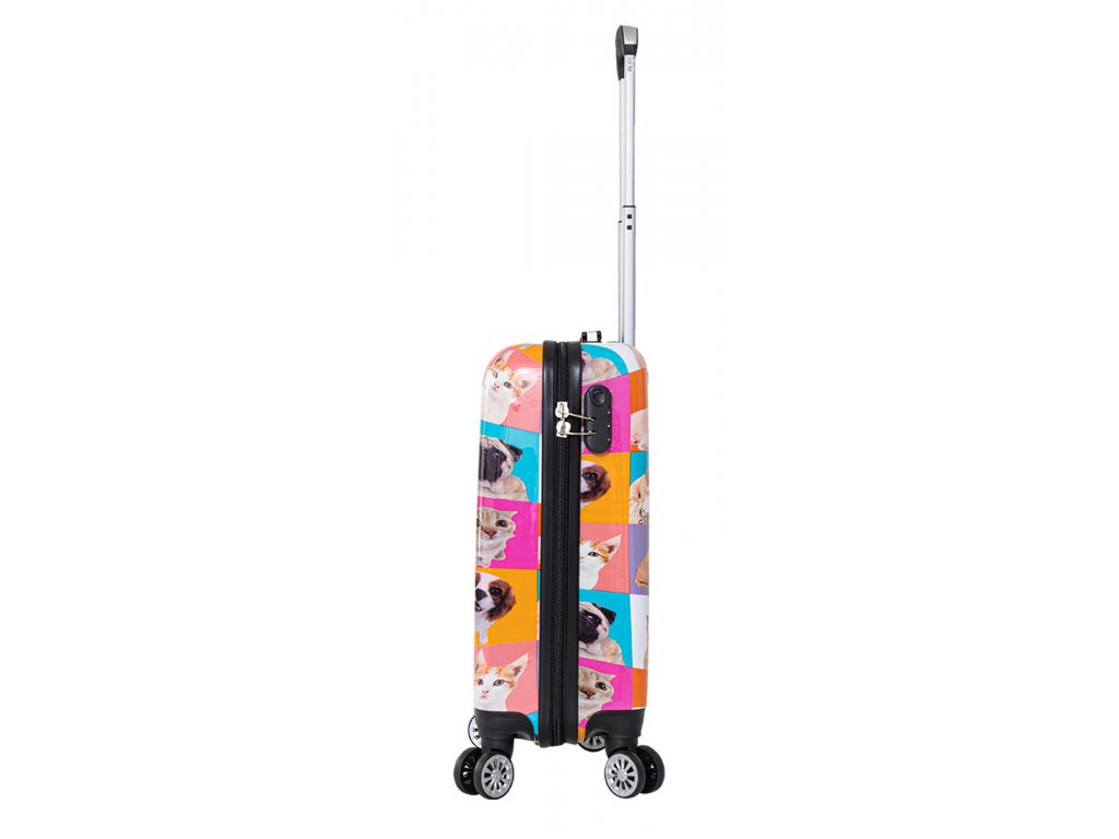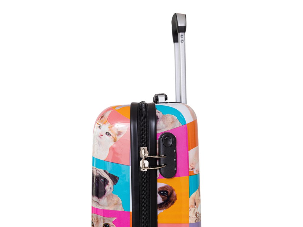 Cestovní kufr v moderním designu francouzské značky Madisson s mozaikou fotek psů a koček. Má jedinečný vzhled, který jej odlišuje od ostatních zavazadel svým neobvyklým a barevným potiskem.