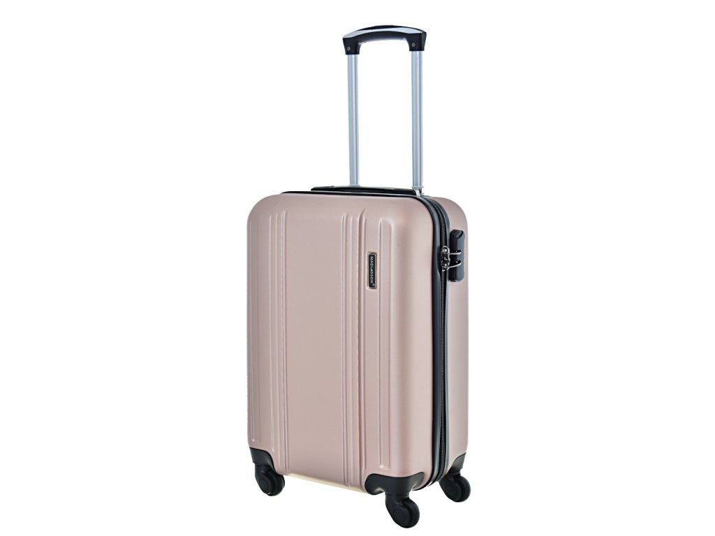 Skořepinový kufr abs z kolekce francouzské značky madisson 55 cm ve zlato růžové barvě.