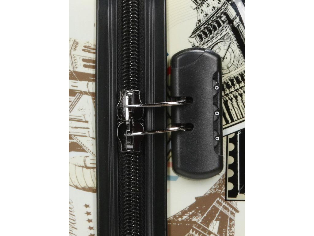 Cestovní kufr s moderním potiskem francouzské značky Madisson. Vydejte se na cestování s kvalitními a zajímavými kufry Madisson. Kufr je odolný vůči nešetrnému zacházení díky kombinaci materiálu ABS a polykarbonátu.