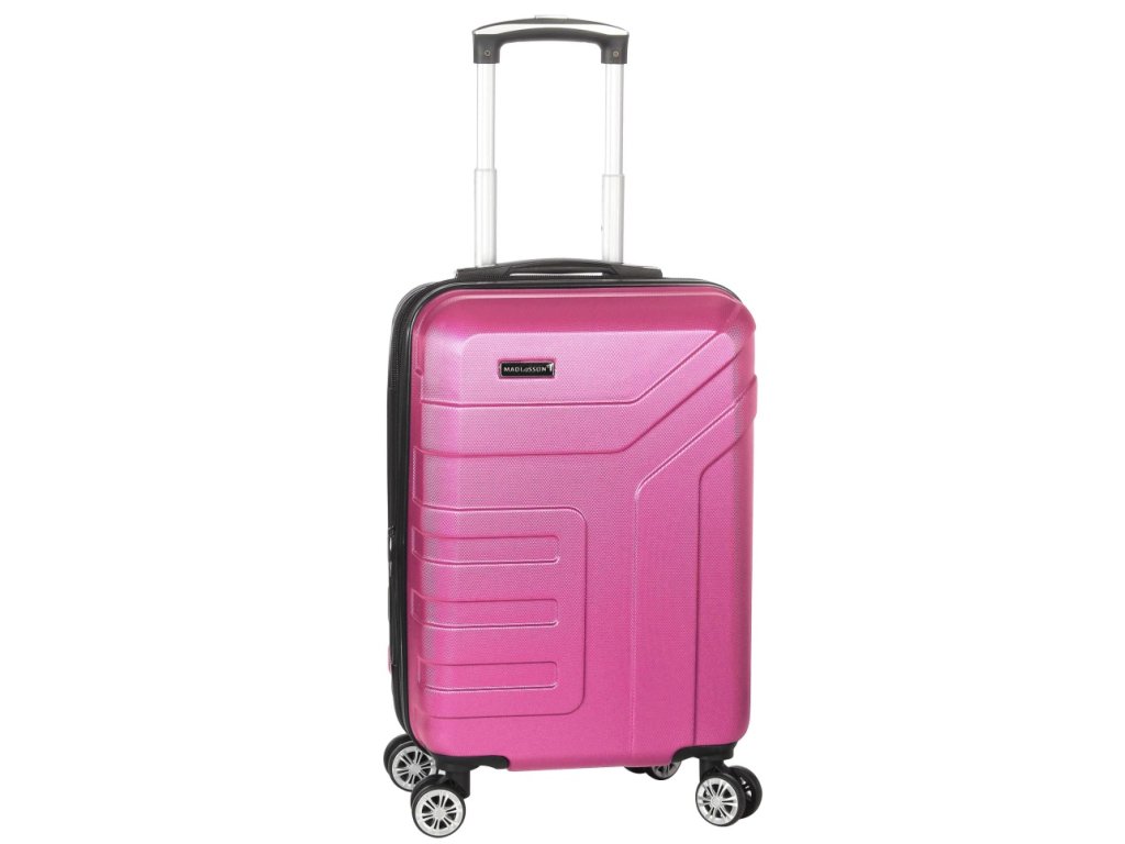 Skořepinový kufr francouzské značky Madisson na 4 dvojitých kolečkách v růžové barvě.