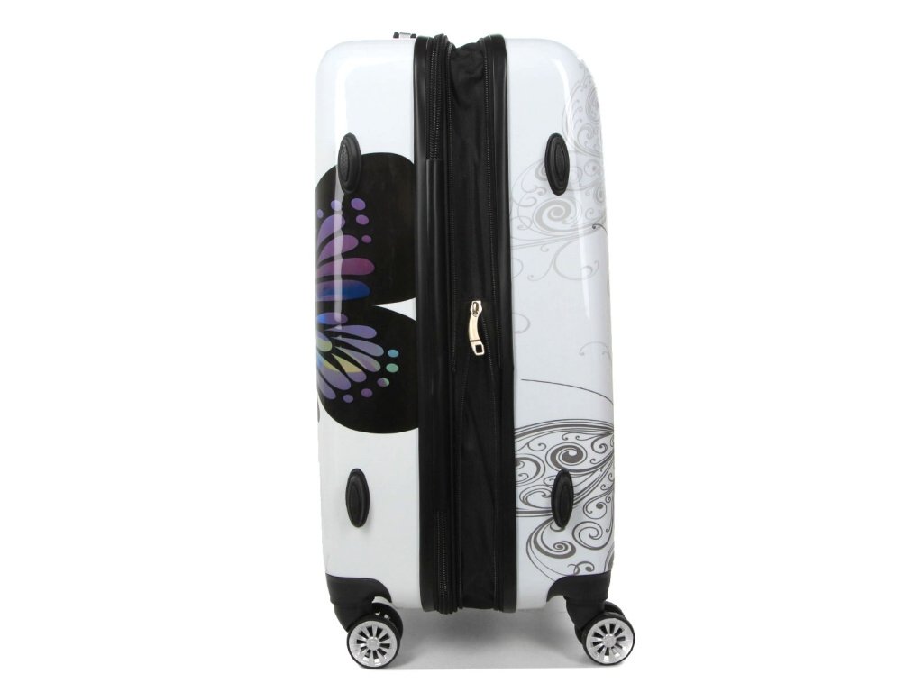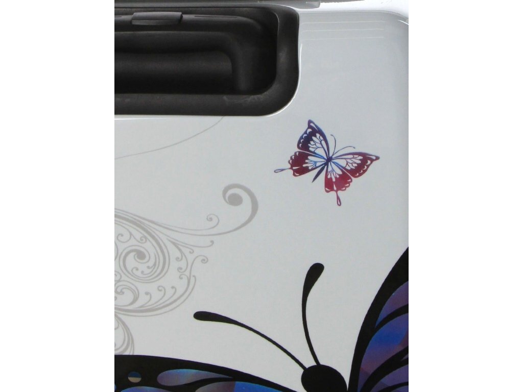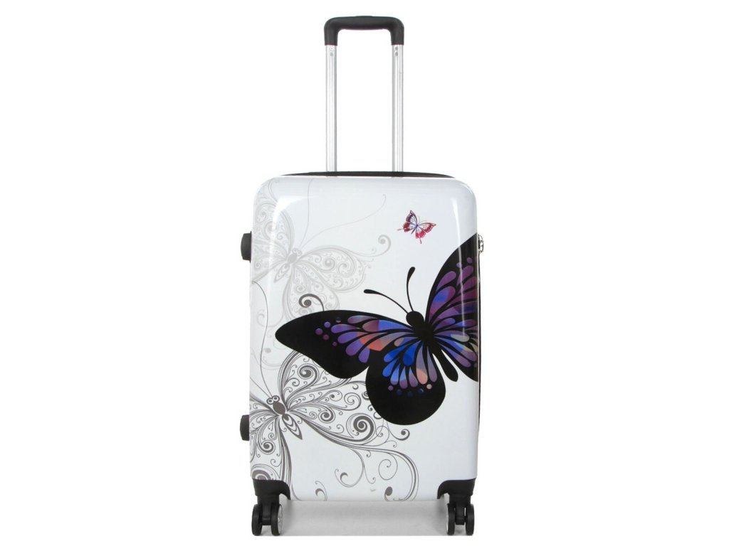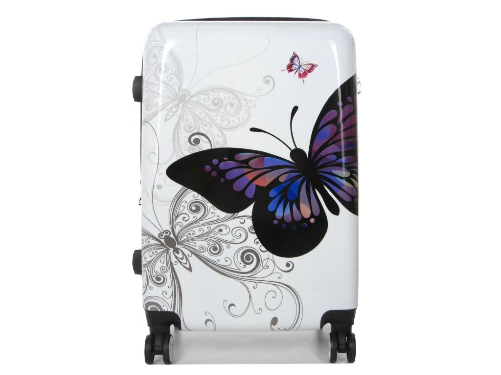 Cestovní kufr 66 cm v moderním designu francouzské značky Madisson v bílé barvě s motivem letícího motýla. Má jedinečný vzhled, který jej odlišuje od ostatních zavazadel svým neobvyklým a barevným potiskem. Jedná se o vylepšenou verzi kufru oblíbeného designu. Motiv na kufru je plastický. Kufr je odolný vůči nešetrnému zacházení.