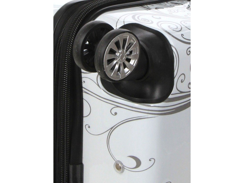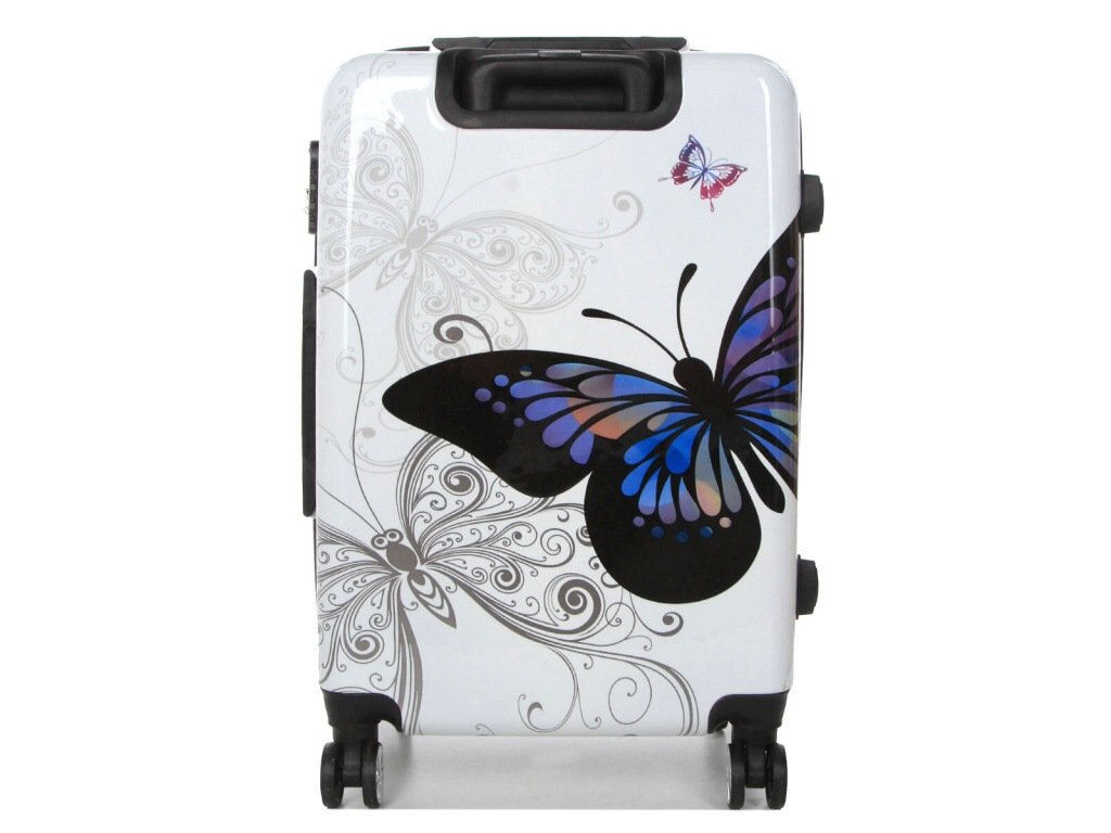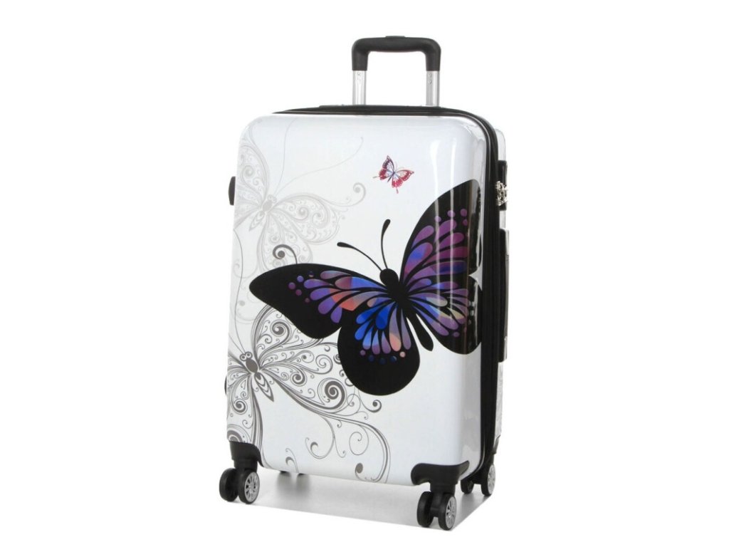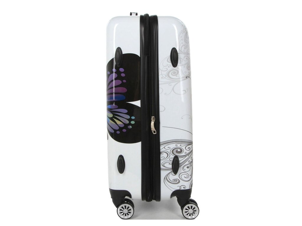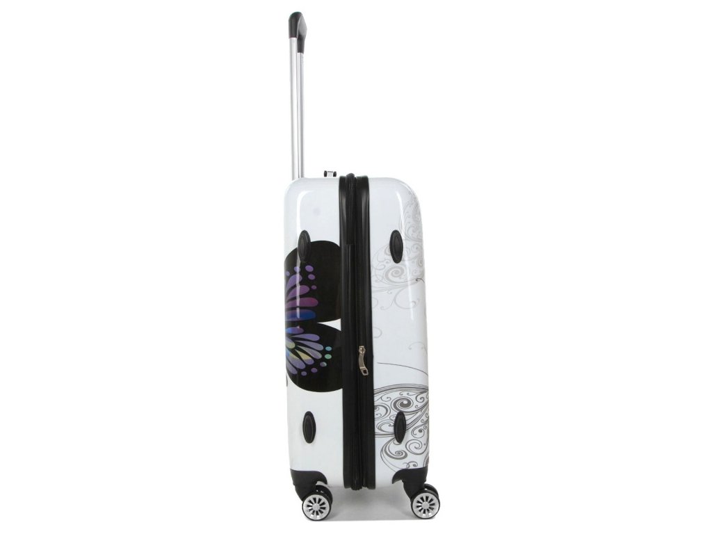 Cestovní kufr 66 cm v moderním designu francouzské značky Madisson v bílé barvě s motivem letícího motýla. Má jedinečný vzhled, který jej odlišuje od ostatních zavazadel svým neobvyklým a barevným potiskem. Jedná se o vylepšenou verzi kufru oblíbeného designu. Motiv na kufru je plastický. Kufr je odolný vůči nešetrnému zacházení.