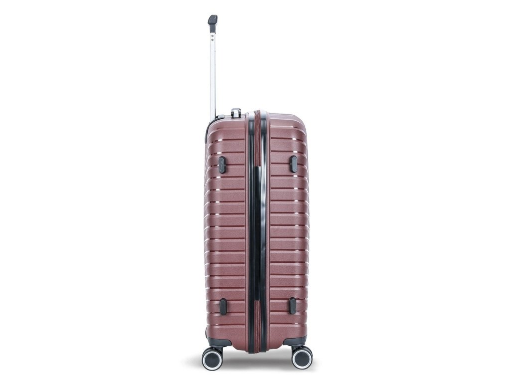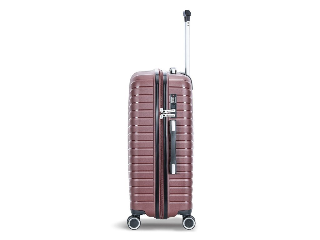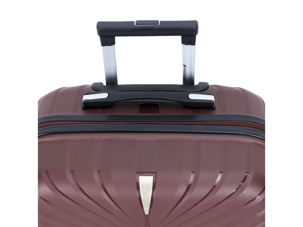 Cestovní kufr 77 cm francouzské značky Madisson ve vínové barvě. Polypropylenový kufr Madisson nabízí hned řadu výhod, a to nízkou hmotnost, téměř nulovou rozbitnost, cenovou dostupnost pro každého, solidní zpracování a v neposlední řadě také elegantní a moderní drážkovaný vzhled.