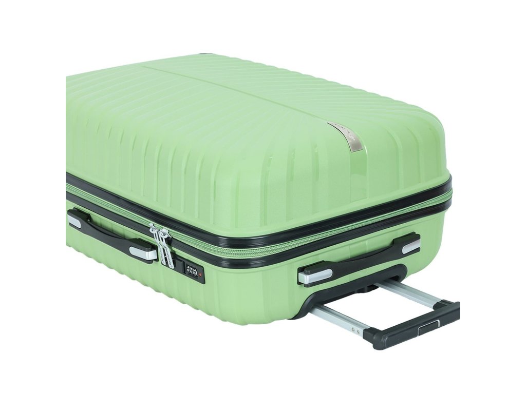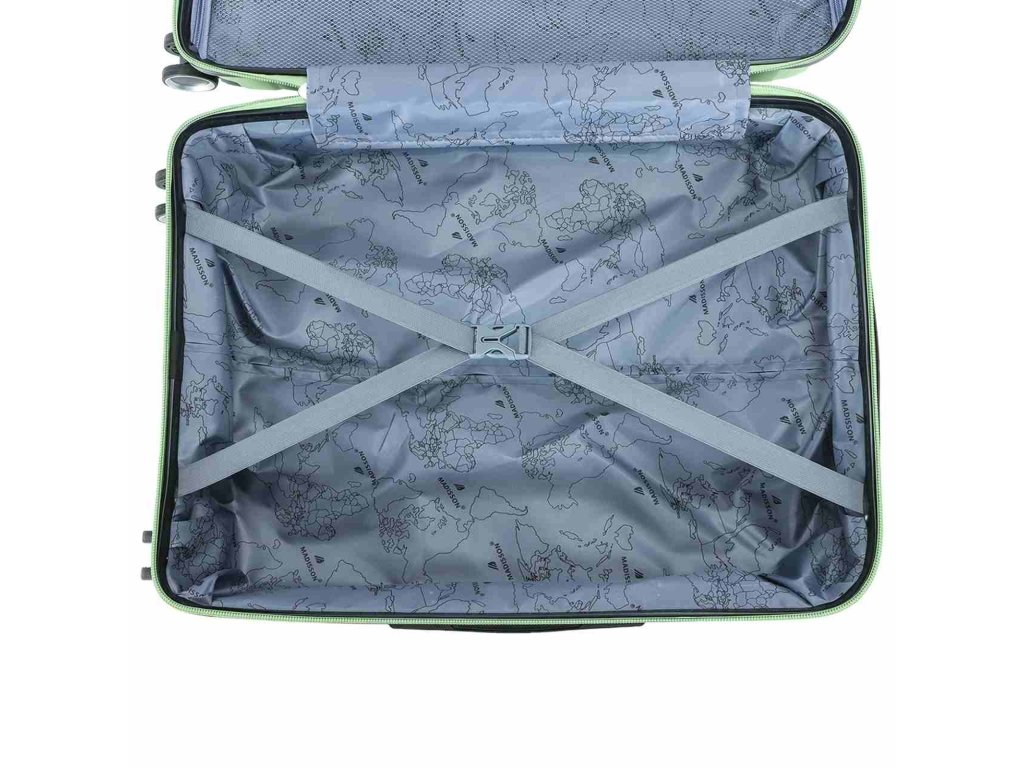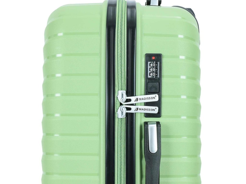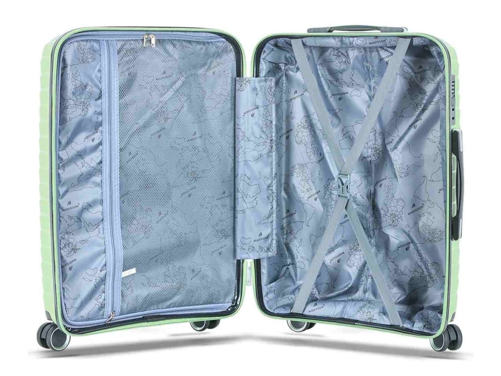 Cestovní kufr 77 cm francouzské značky Madisson ve světle zelené barvě. Polypropylenový kufr Madisson nabízí hned řadu výhod, a to nízkou hmotnost, téměř nulovou rozbitnost, cenovou dostupnost pro každého, solidní zpracování a v neposlední řadě také elegantní a moderní drážkovaný vzhled.