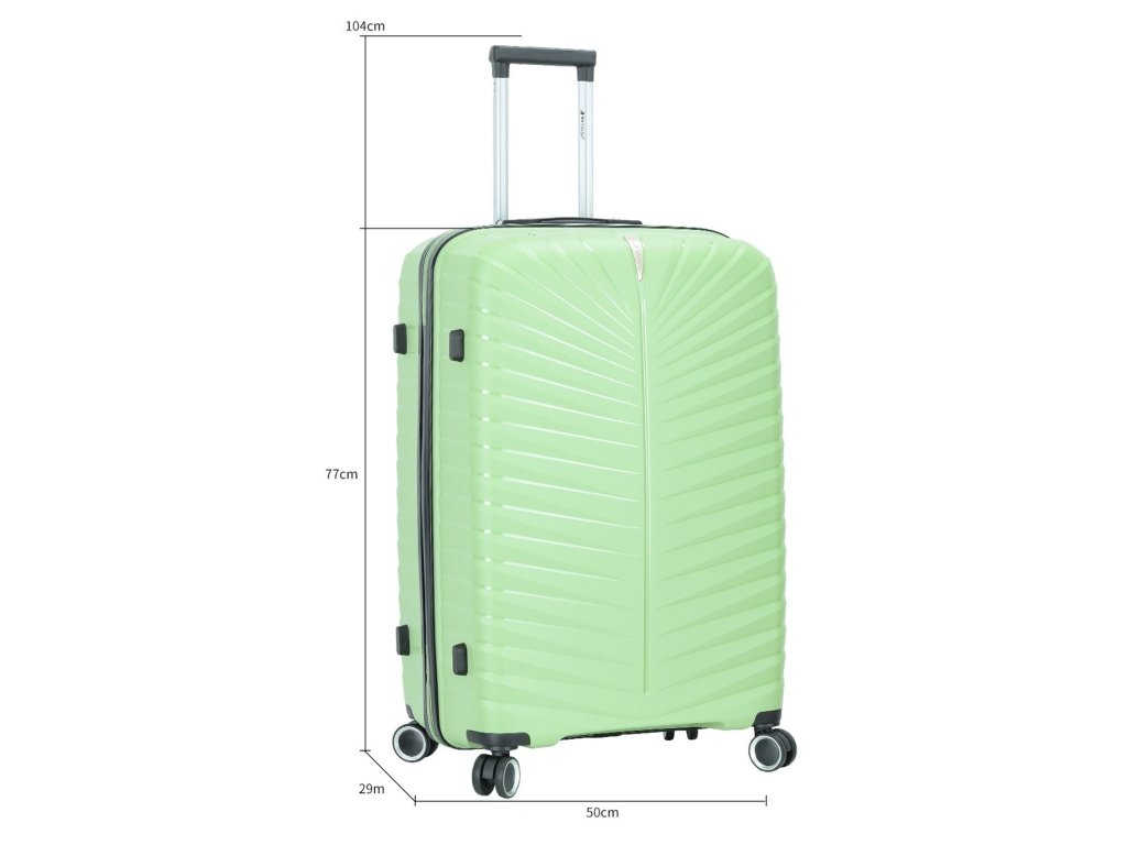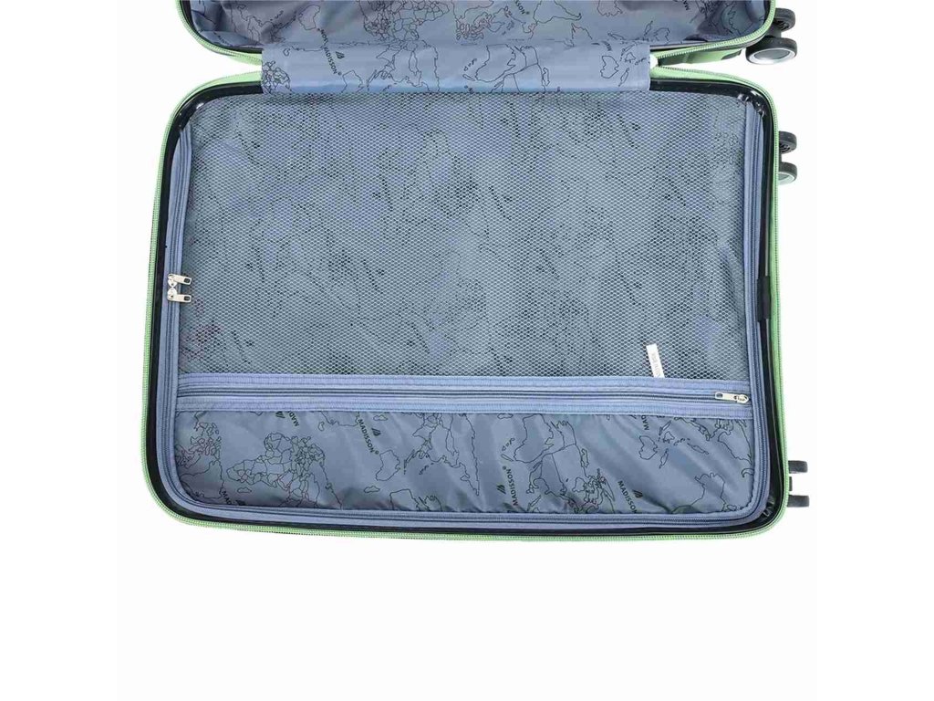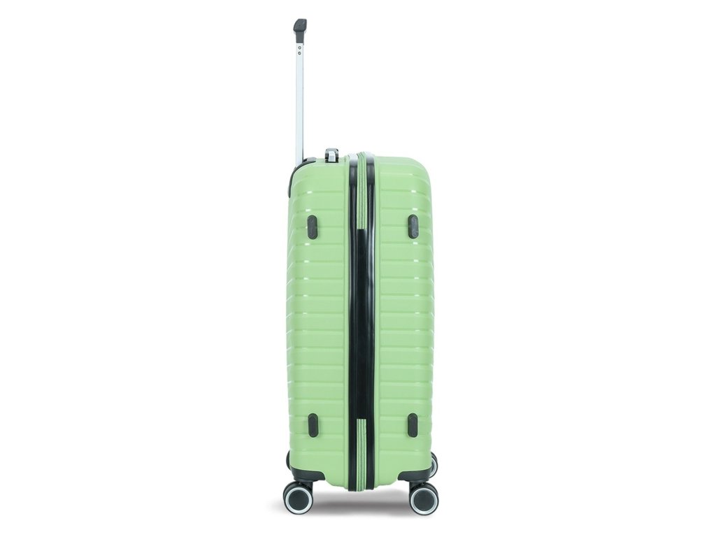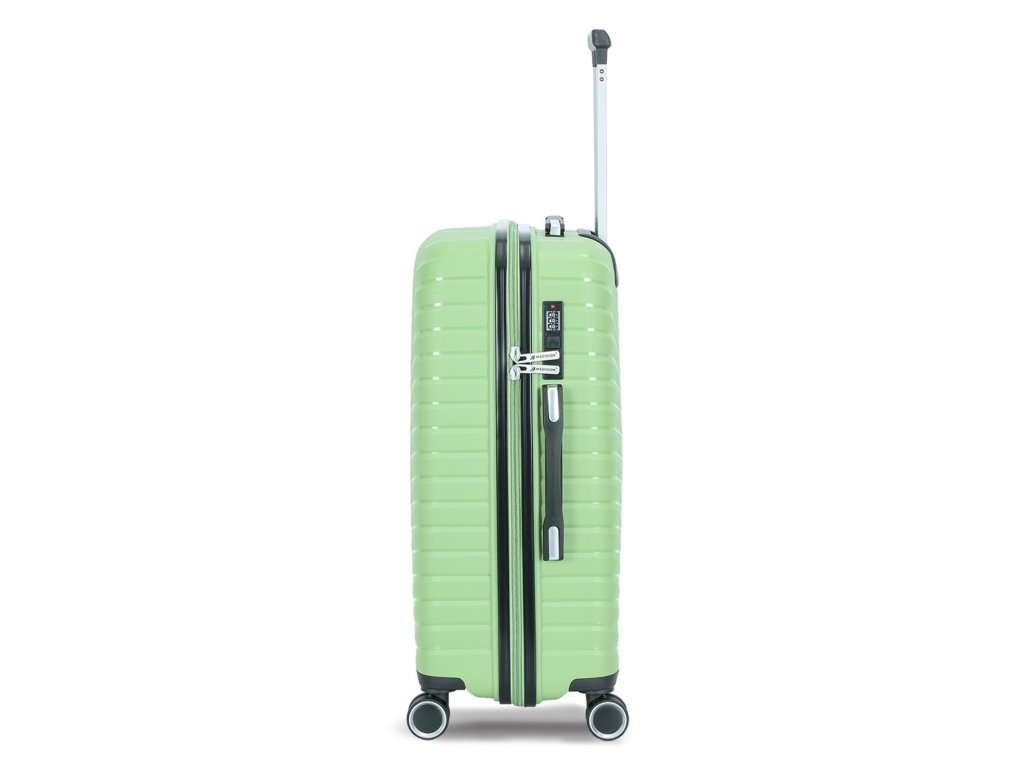 Cestovní kufr 77 cm francouzské značky Madisson ve světle zelené barvě. Polypropylenový kufr Madisson nabízí hned řadu výhod, a to nízkou hmotnost, téměř nulovou rozbitnost, cenovou dostupnost pro každého, solidní zpracování a v neposlední řadě také elegantní a moderní drážkovaný vzhled.