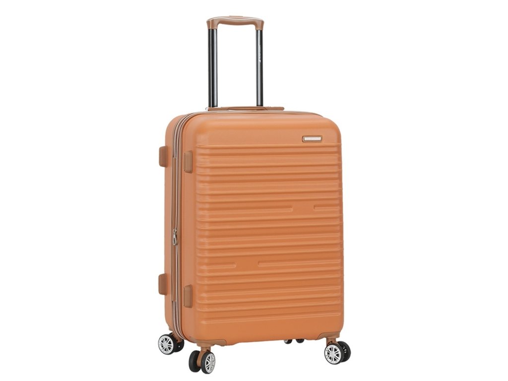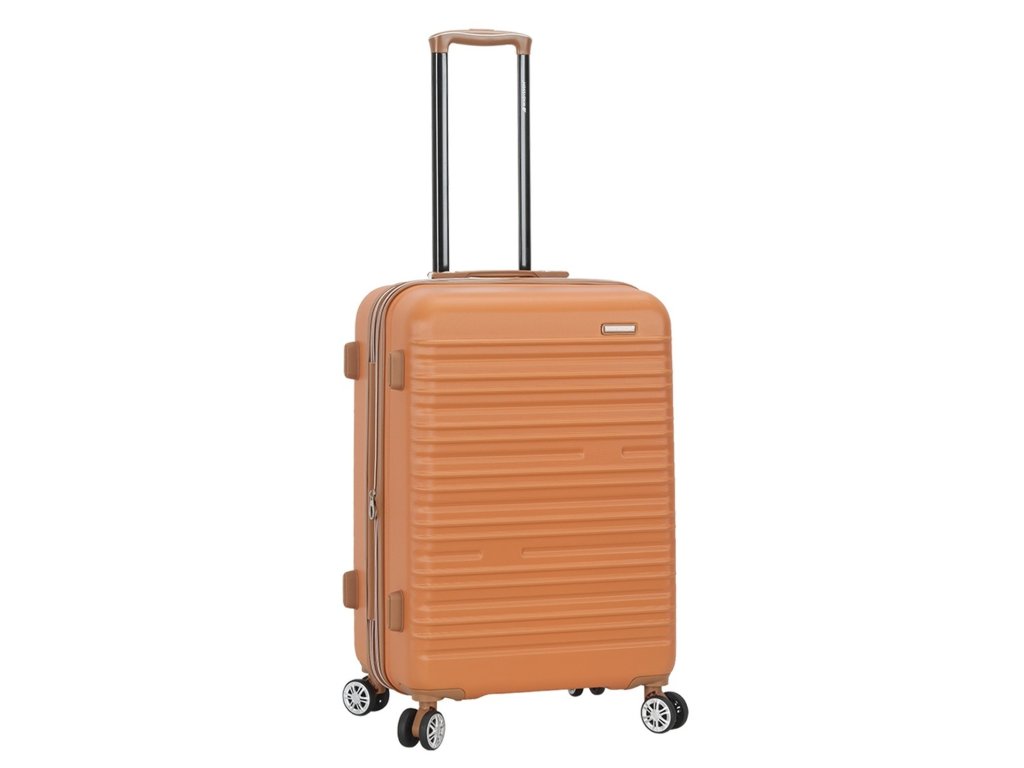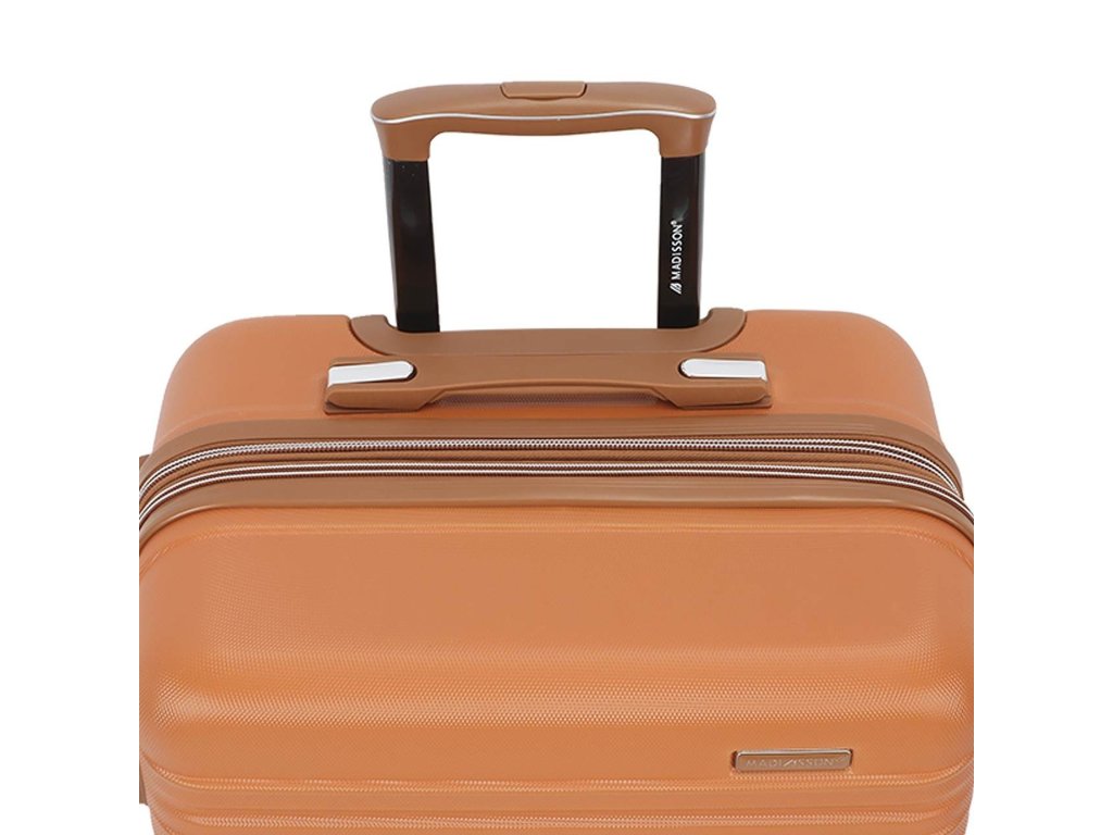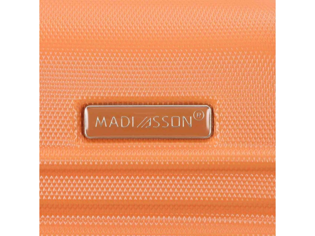 Skořepinový cestovní kufr 67 cm francouzské značky Madisson v oranžové barvě. Moderní vzhled, atraktivní cena a praktičnost, to jsou kufry Madisson se čtyřmi otočnými kolečky. Jsou ideální pro kratší i delší výlety.