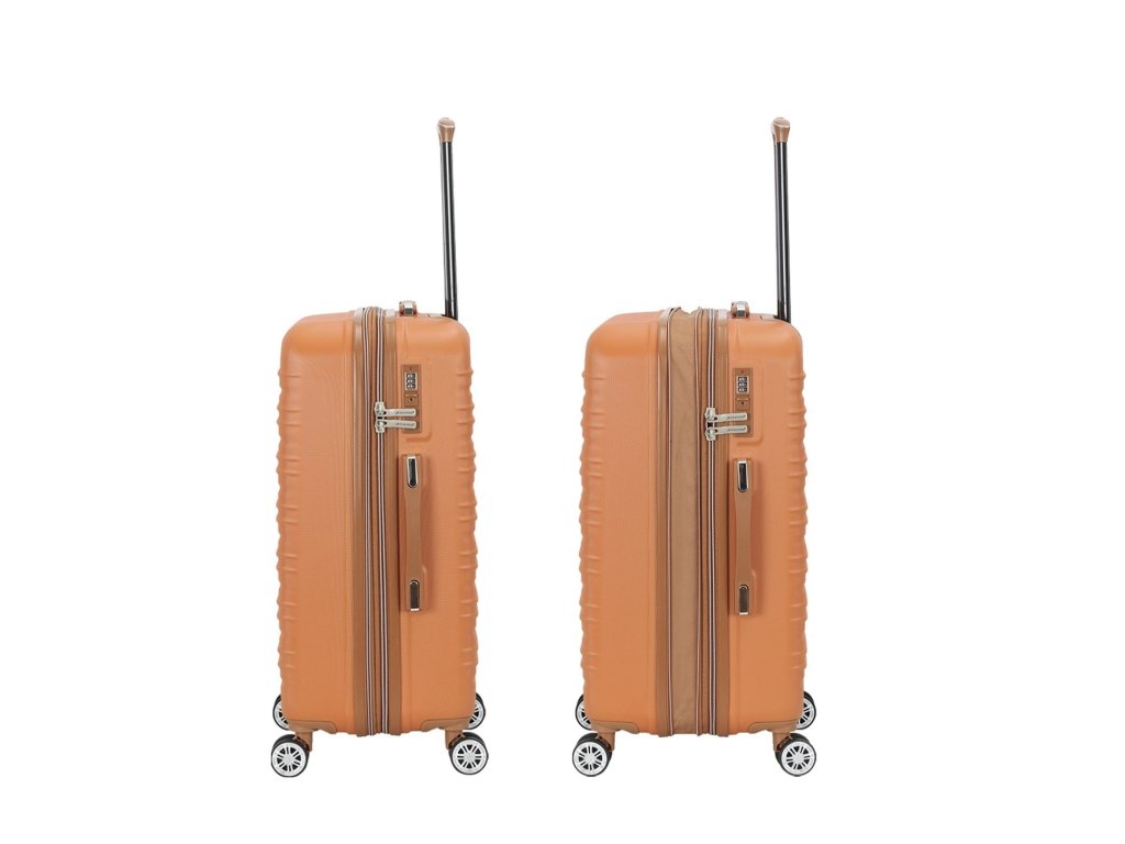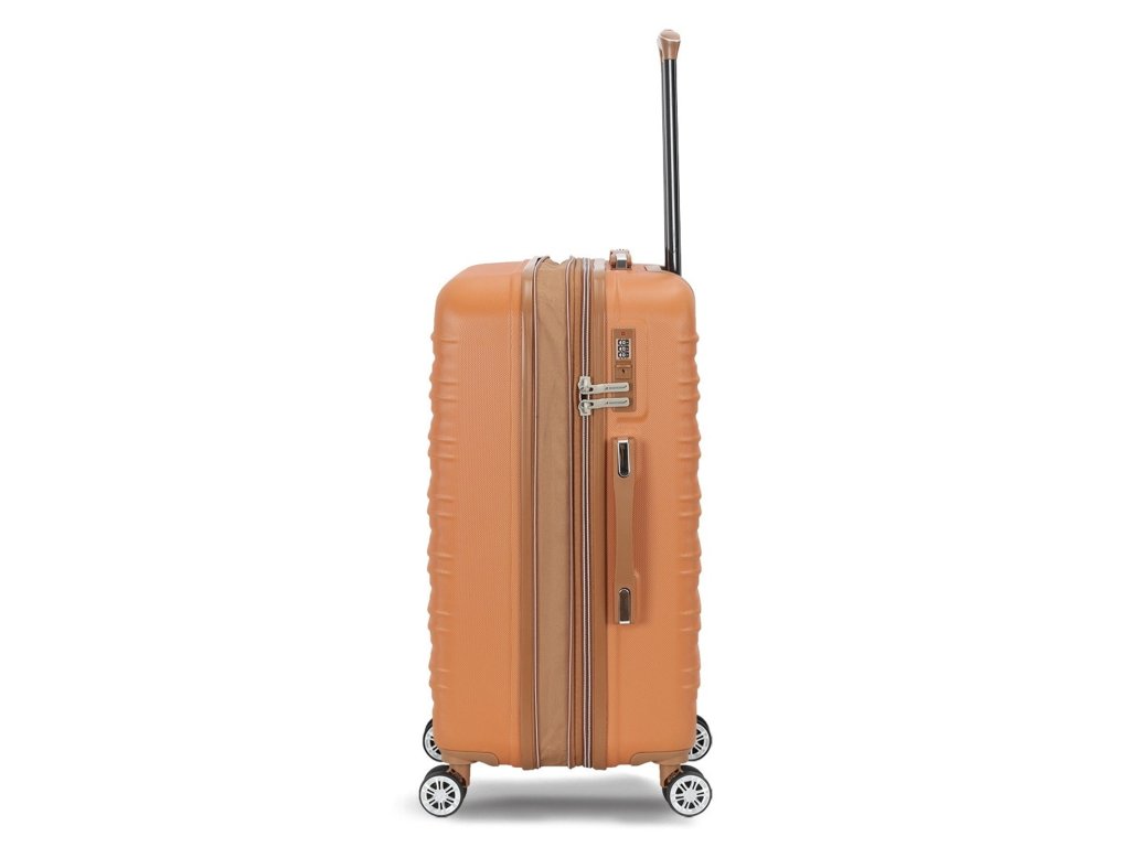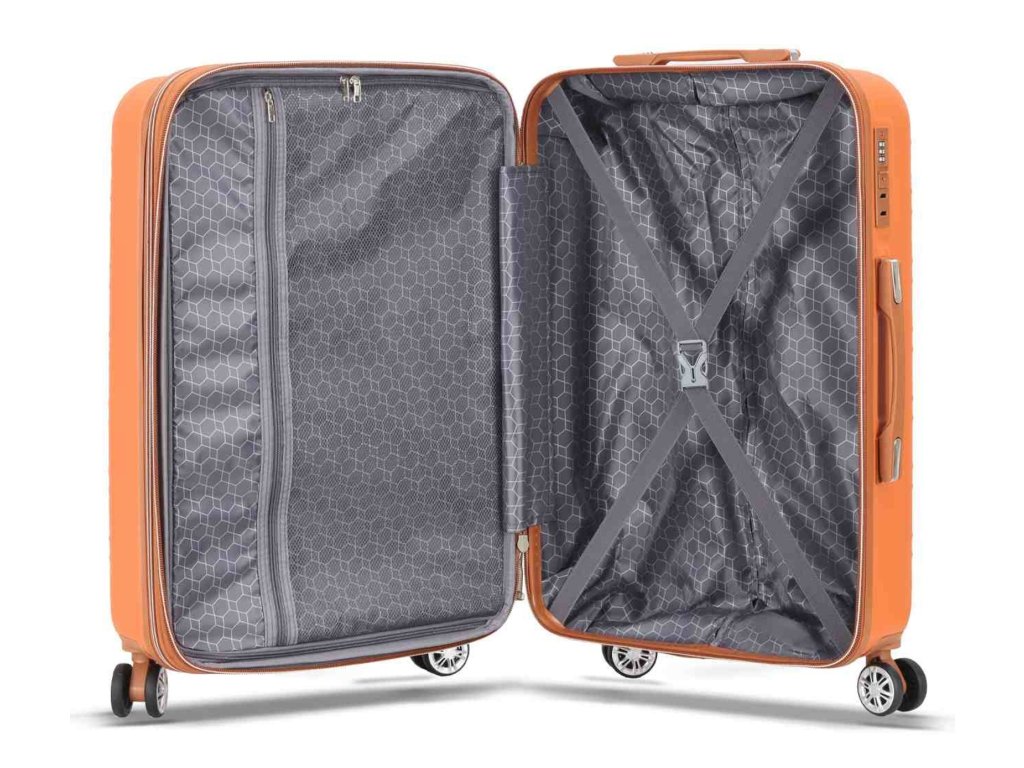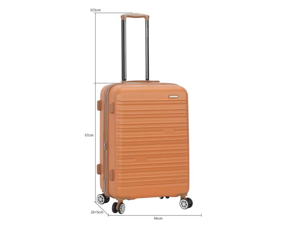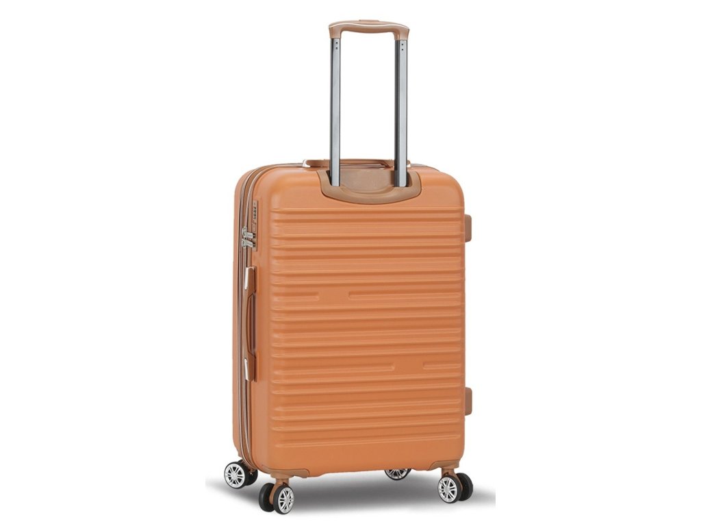 Skořepinový cestovní kufr 67 cm francouzské značky Madisson v oranžové barvě. Moderní vzhled, atraktivní cena a praktičnost, to jsou kufry Madisson se čtyřmi otočnými kolečky. Jsou ideální pro kratší i delší výlety.