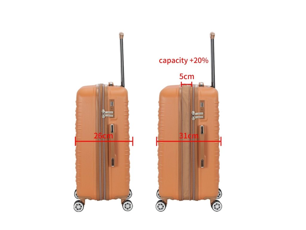- Možnost rozšíření objemu kufru rozepnutím druhého obvodového zipu