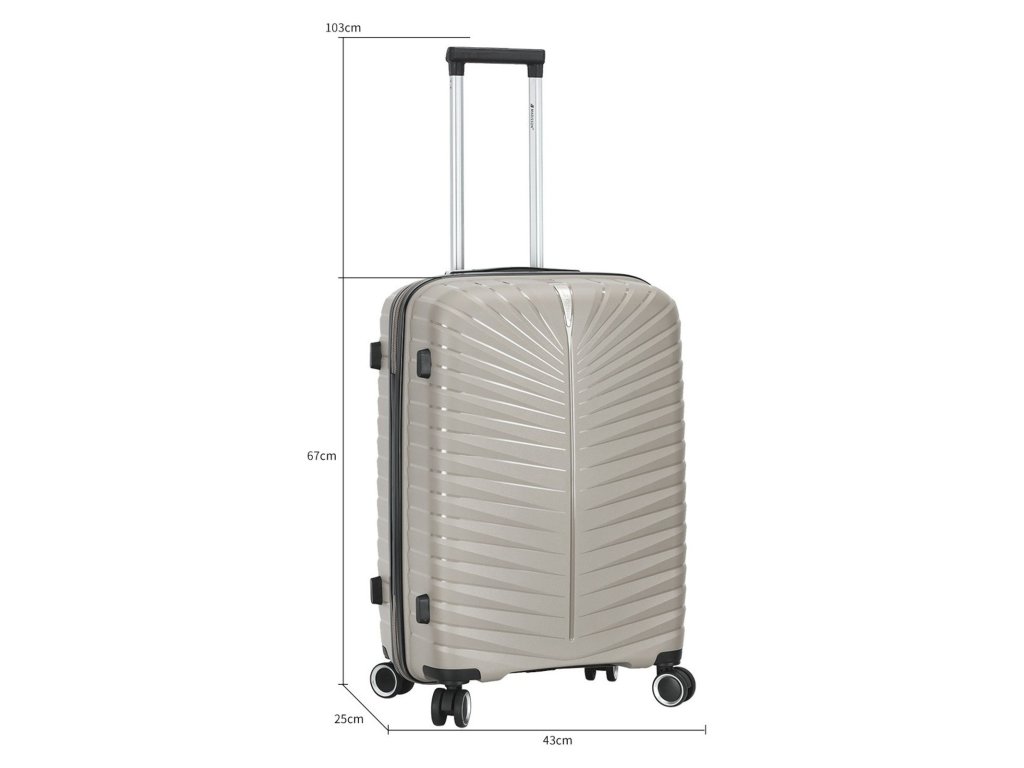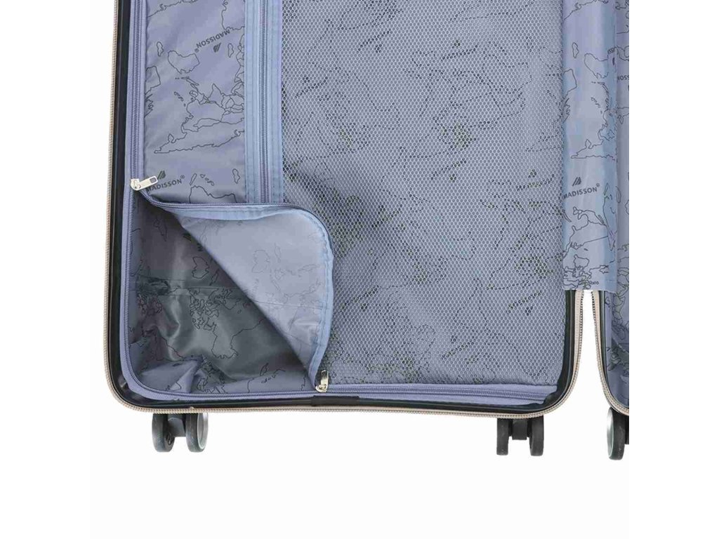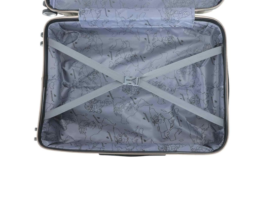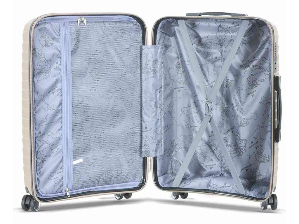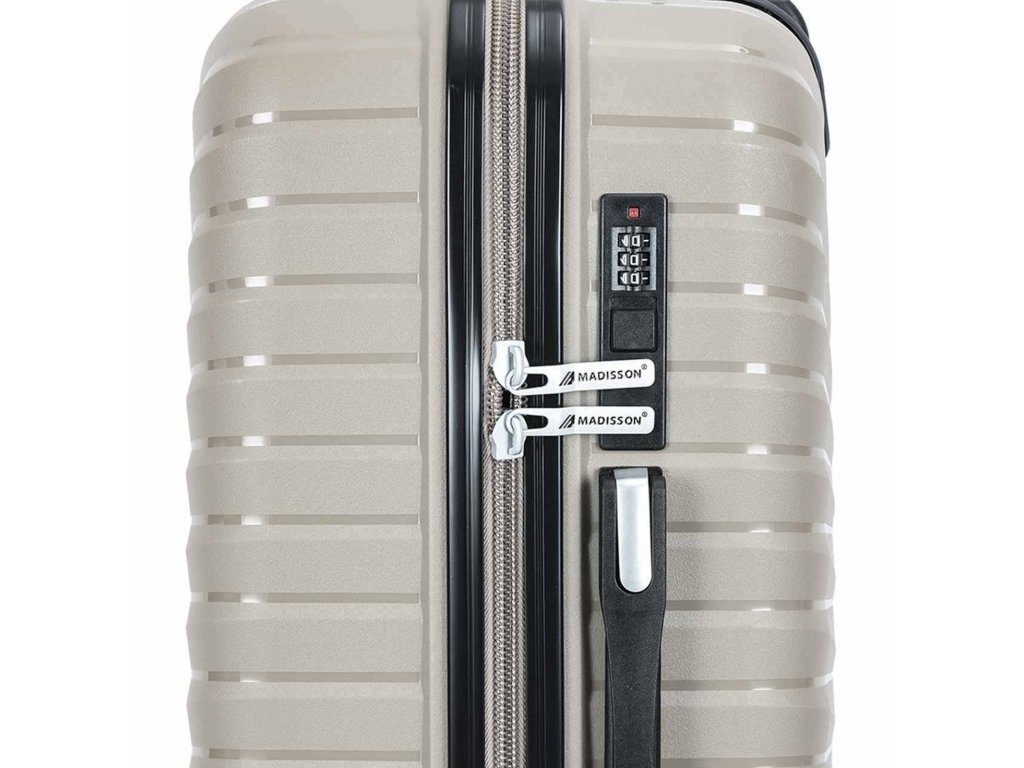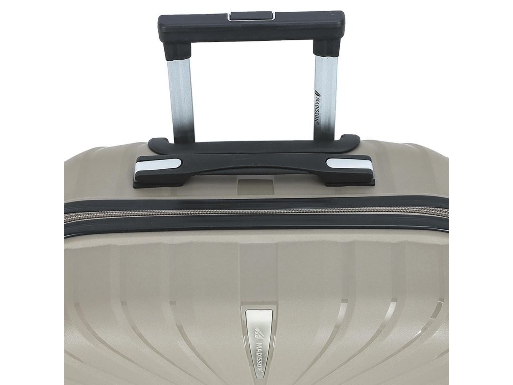 Cestovní kufr 67 cm francouzské značky Madisson série v šampaňské barvě. Polypropylenový kufr Madisson nabízí hned řadu výhod, a to nízkou hmotnost, téměř nulovou rozbitnost, cenovou dostupnost pro každého, solidní zpracování a v neposlední řadě také elegantní a moderní drážkovaný vzhled.