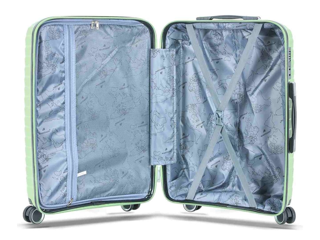 Cestovní kufr 67 cm francouzské značky Madisson série ve světle zelené barvě. Polypropylenový kufr Madisson nabízí hned řadu výhod, a to nízkou hmotnost, téměř nulovou rozbitnost, cenovou dostupnost pro každého, solidní zpracování a v neposlední řadě také elegantní a moderní drážkovaný vzhled.