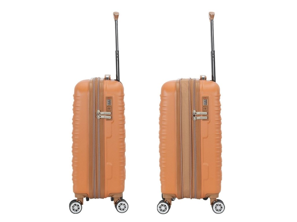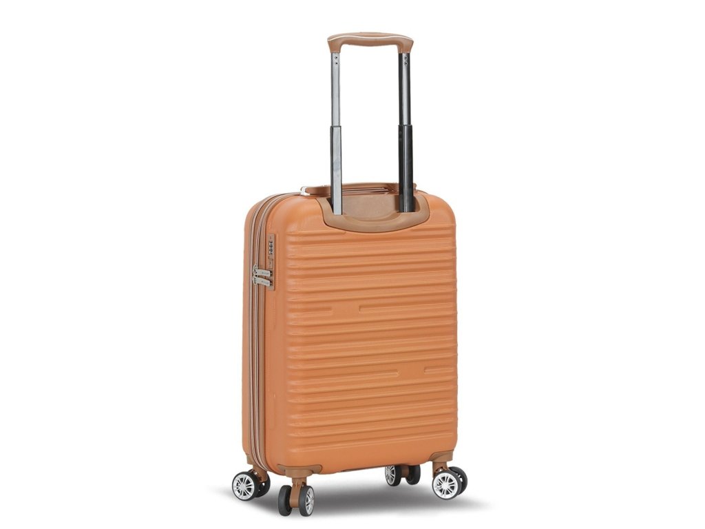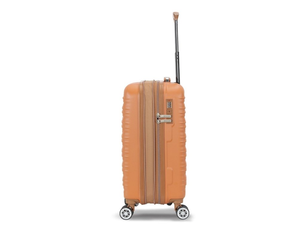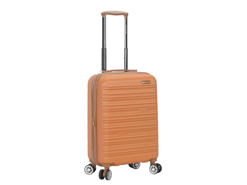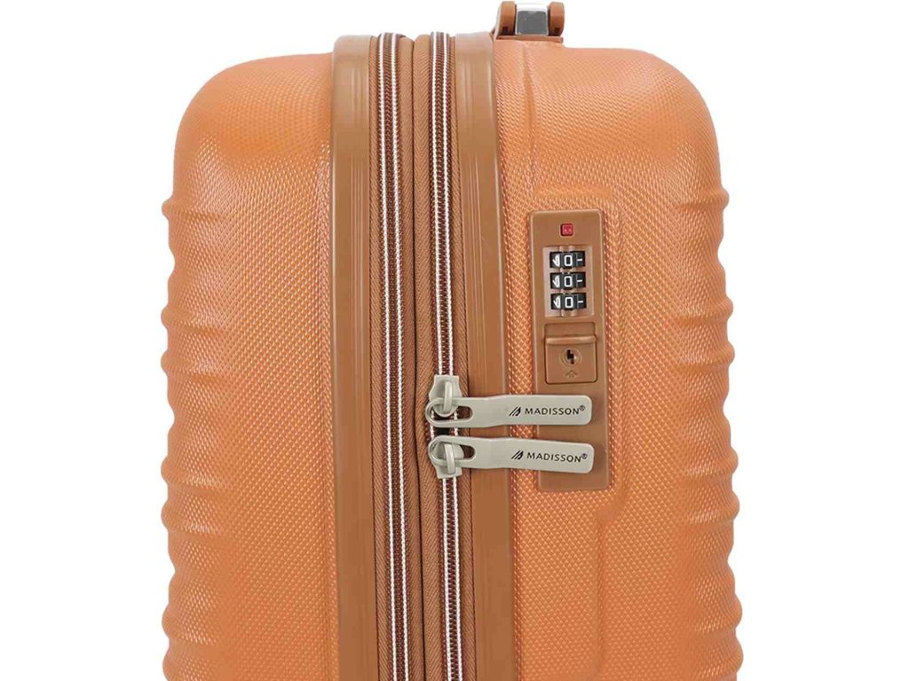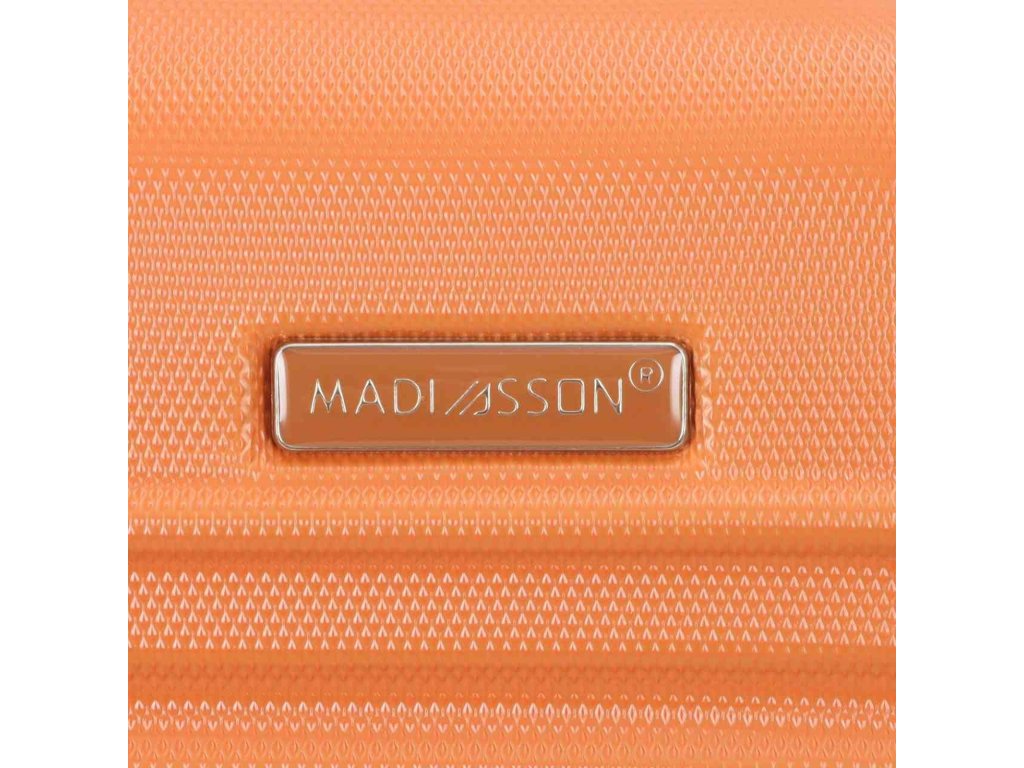 Skořepinový cestovní kufr 55 cm francouzské značky Madisson v oranžové barvě. Moderní vzhled, atraktivní cena a praktičnost, to jsou kufry Madisson se čtyřmi otočnými kolečky. Jsou ideální pro víkendové výlety.