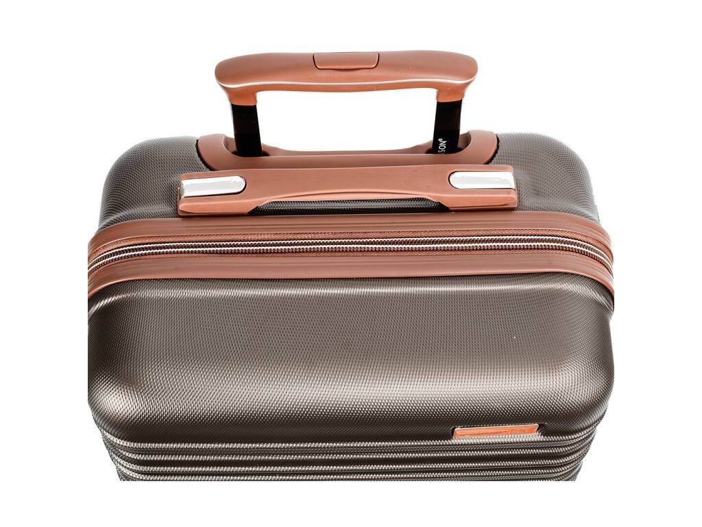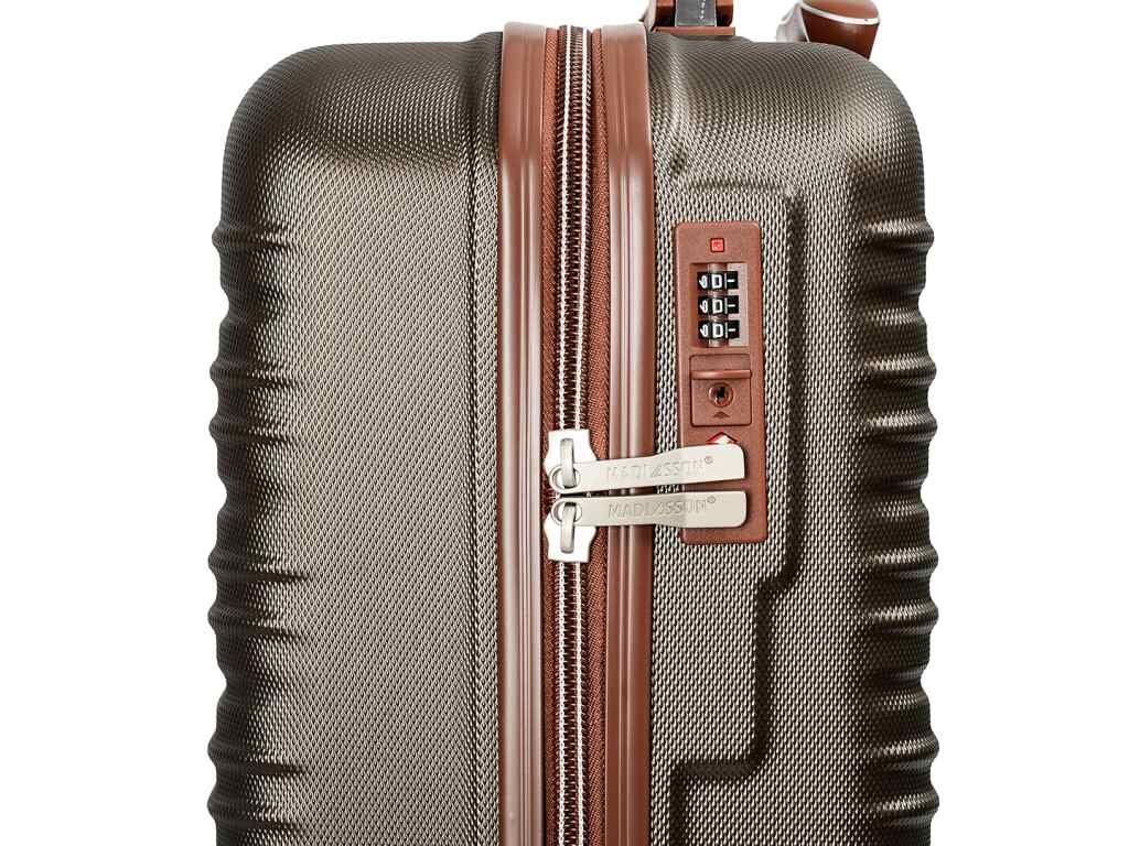 Skořepinový cestovní kufr 55 cm francouzské značky Madisson v hnědé kávové barvě. Moderní vzhled, atraktivní cena a praktičnost, to jsou kufry Madisson se čtyřmi otočnými kolečky. Jsou ideální pro víkendové výlety.