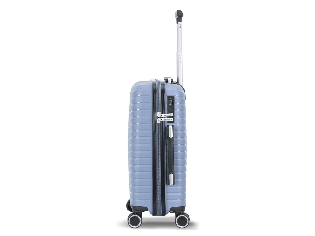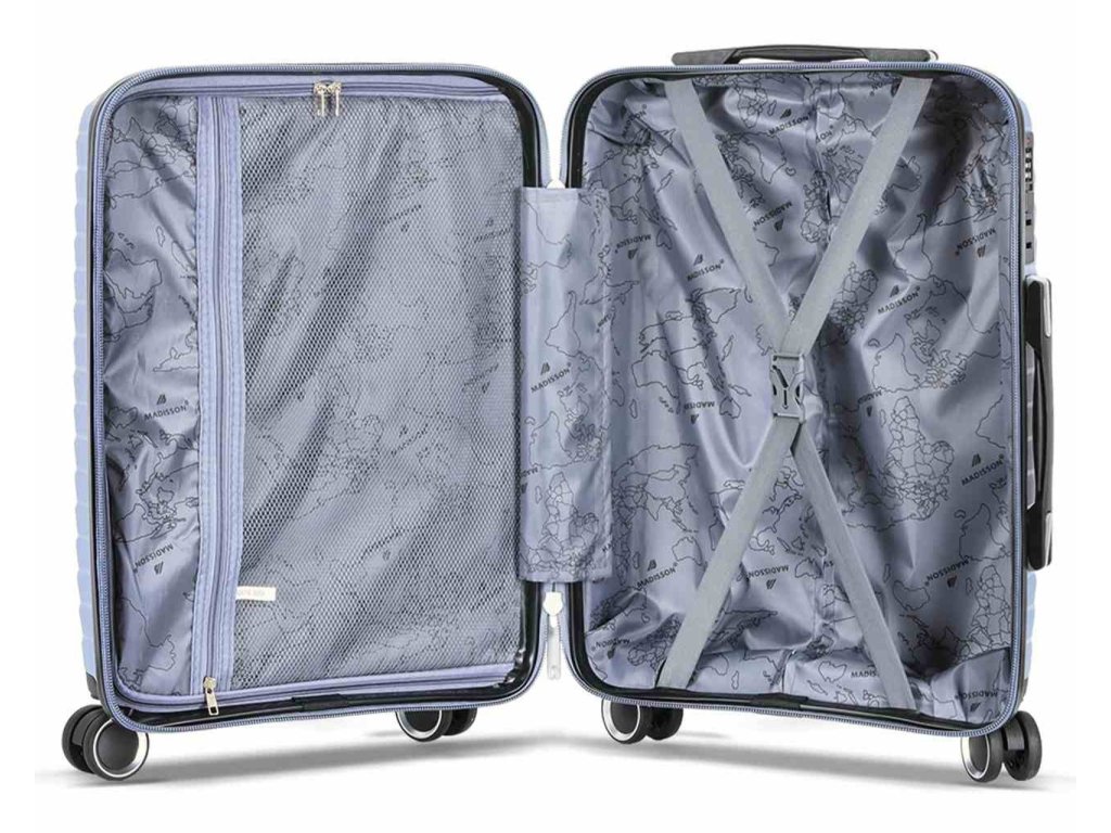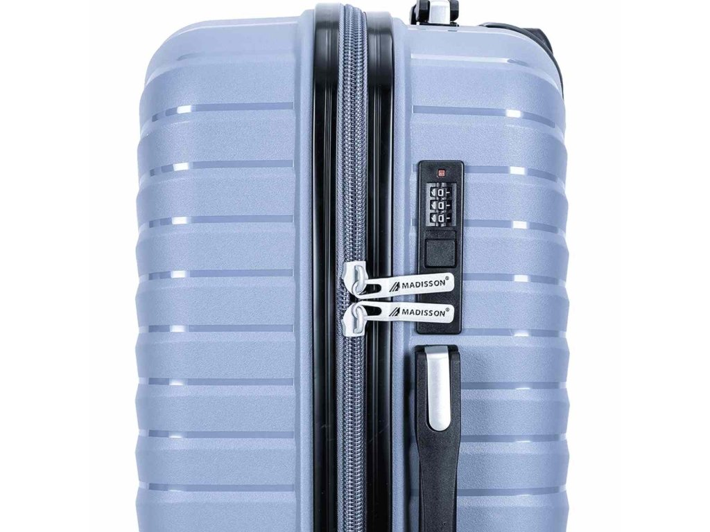 Cestovní kufr velikosti S francouzské značky Madisson v šedé barvě. Polypropylenový kufr Madisson nabízí hned řadu výhod, a to nízkou hmotnost, téměř nulovou rozbitnost, cenovou dostupnost pro každého, solidní zpracování a v neposlední řadě také elegantní a moderní drážkovaný vzhled.
