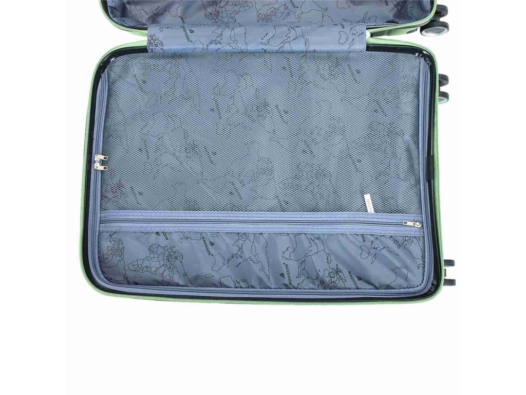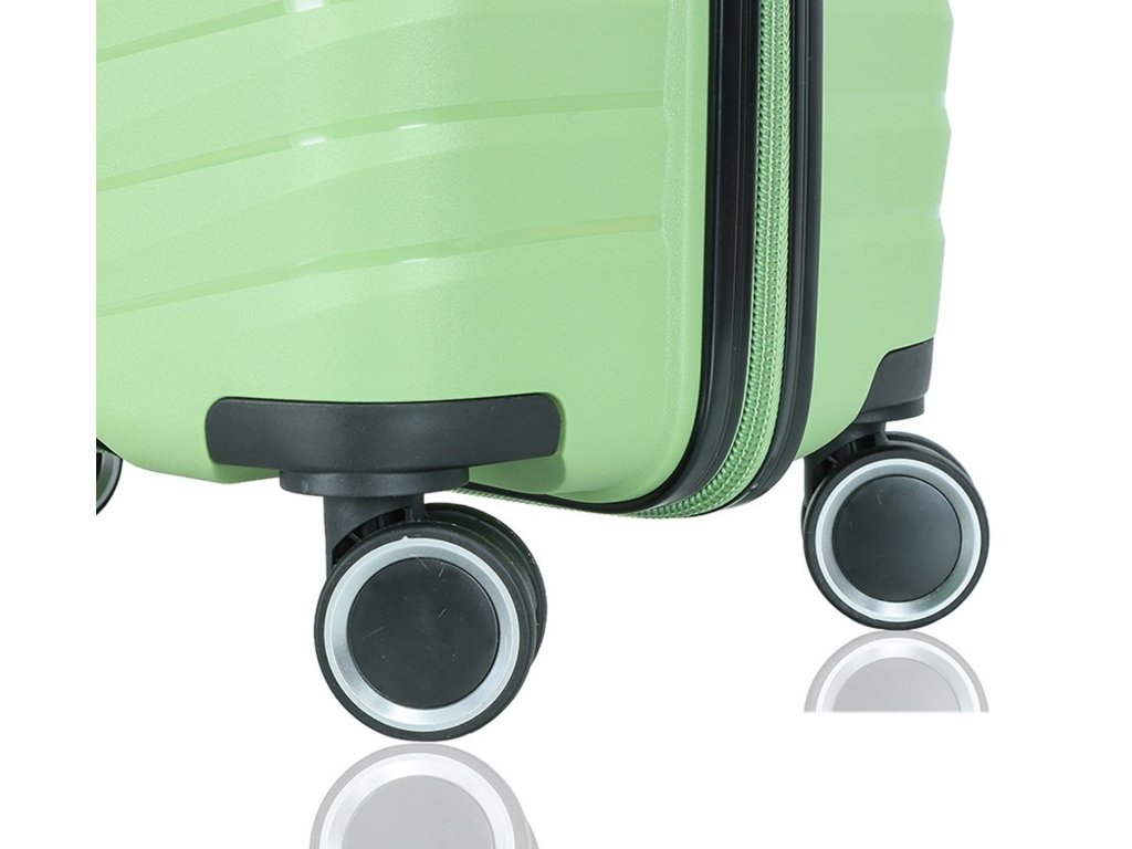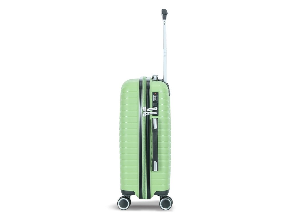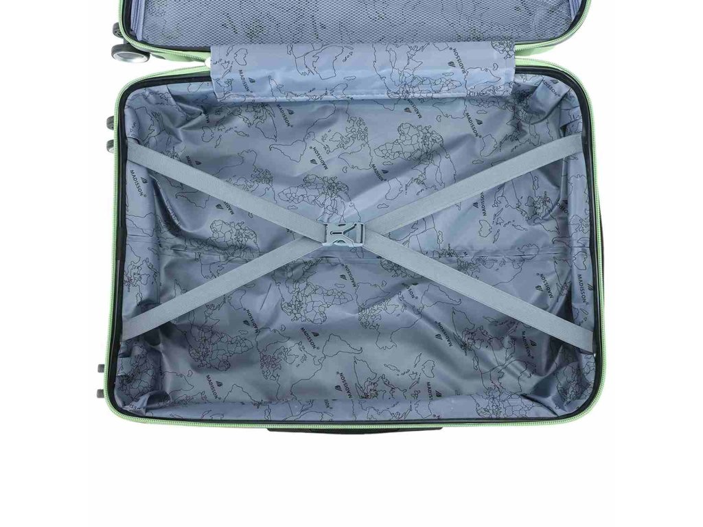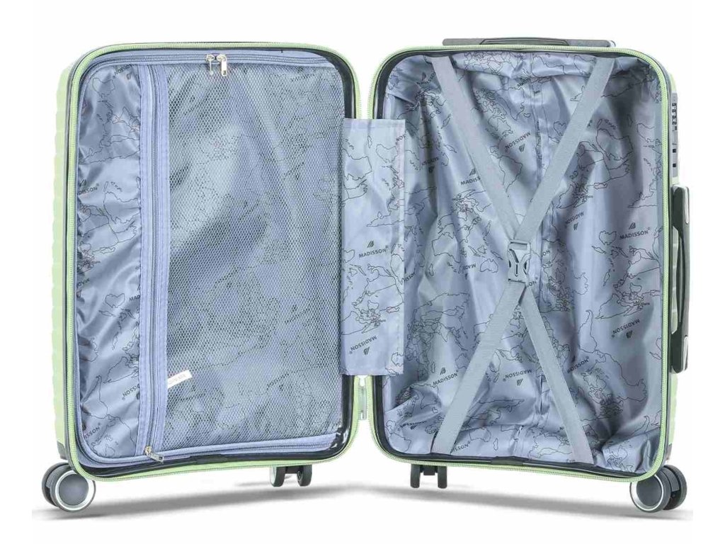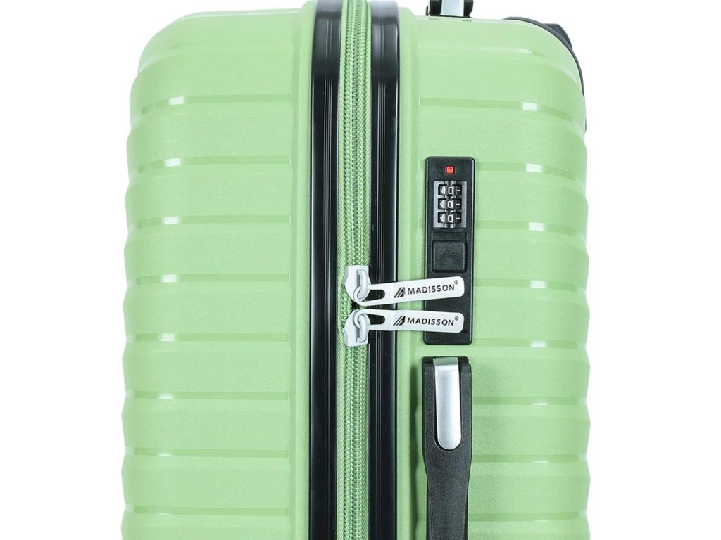 Cestovní kufr velikosti S francouzské značky Madisson ve světle zelené barvě. Polypropylenový kufr Madisson nabízí hned řadu výhod, a to nízkou hmotnost, téměř nulovou rozbitnost, cenovou dostupnost pro každého, solidní zpracování a v neposlední řadě také elegantní a moderní drážkovaný vzhled.