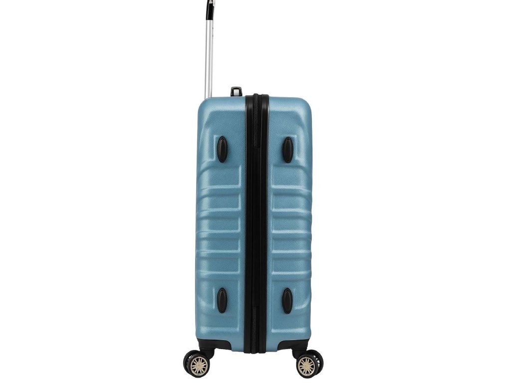 Skořepinový cestovní kufr 67 cm francouzské značky Madisson na 4 dvojitých kolečkách ve světle modré barvě vyniká elegantním spirálovým designem, který dodává celému kufru jedinečný vzhled. Vyrobený z odolného ABS plastu, poskytuje spolehlivou ochranu vašim věcem a zároveň si zachovává nízkou hmotnost pro pohodlné cestování. Na kruhovém detailu je umístěno decentní logo značky.