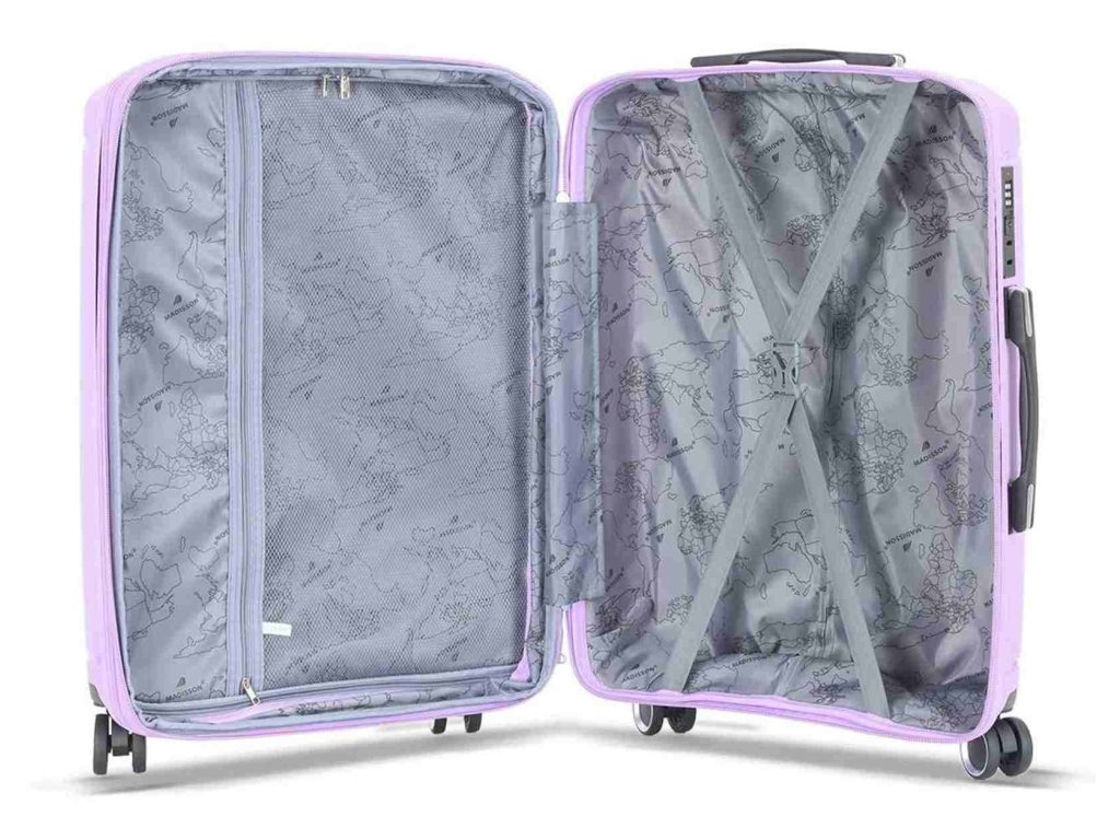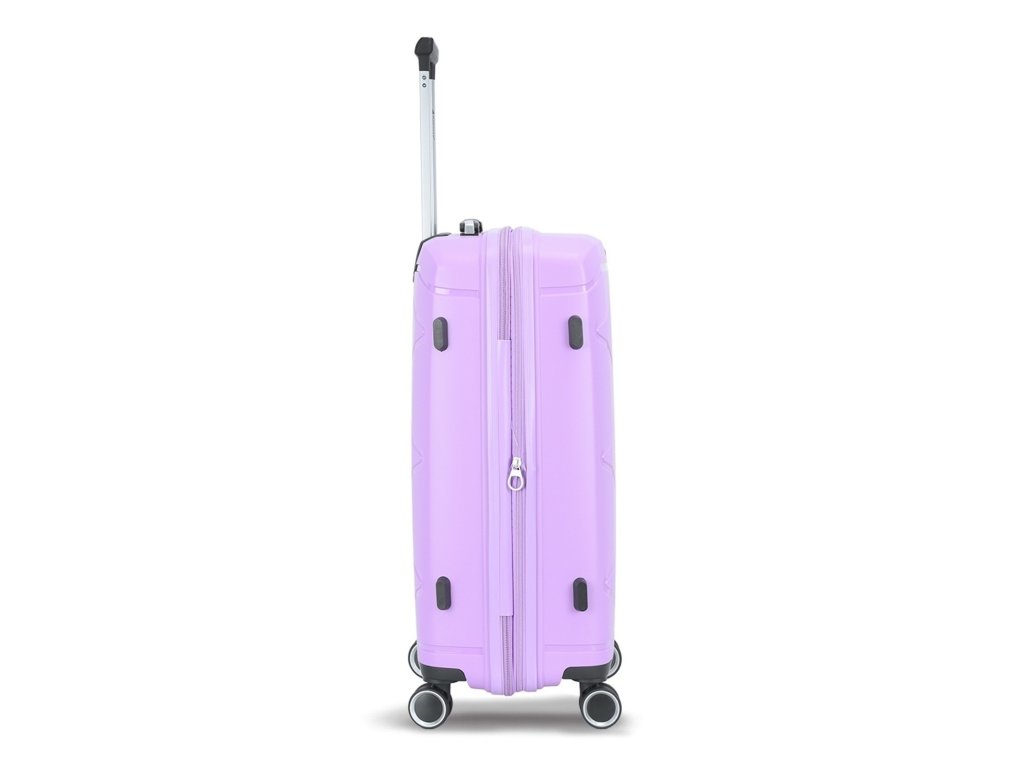Cestovní kufr 75 cm francouzské značky Madisson ve světle fialové barvě. Polypropylenový kufr Madisson nabízí hned řadu výhod, a to nízkou hmotnost, téměř nulovou rozbitnost, cenovou dostupnost pro každého, solidní zpracování a v neposlední řadě také elegantní a moderní drážkovaný vzhled.