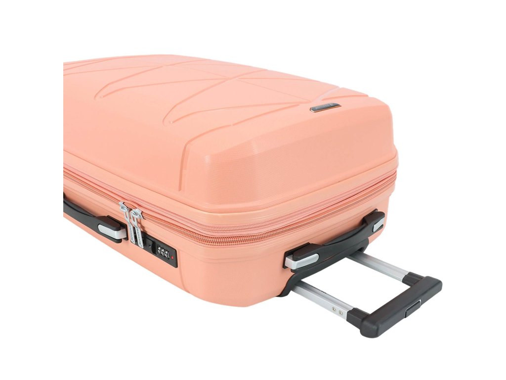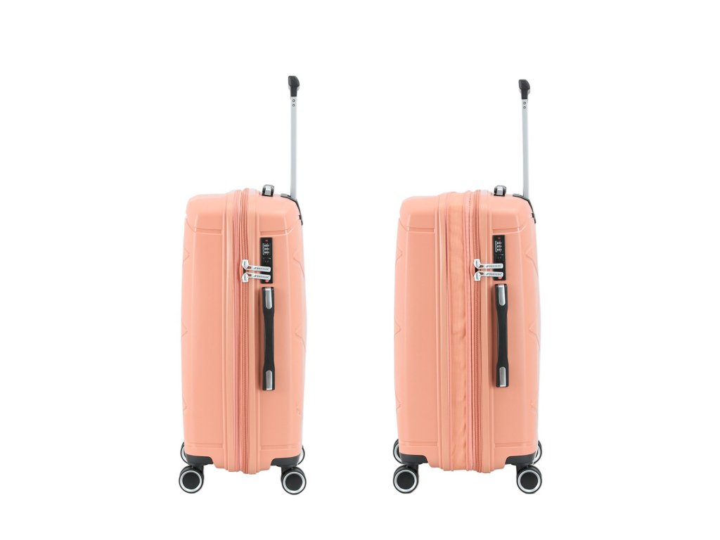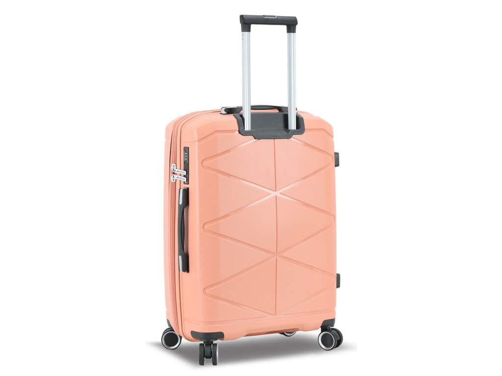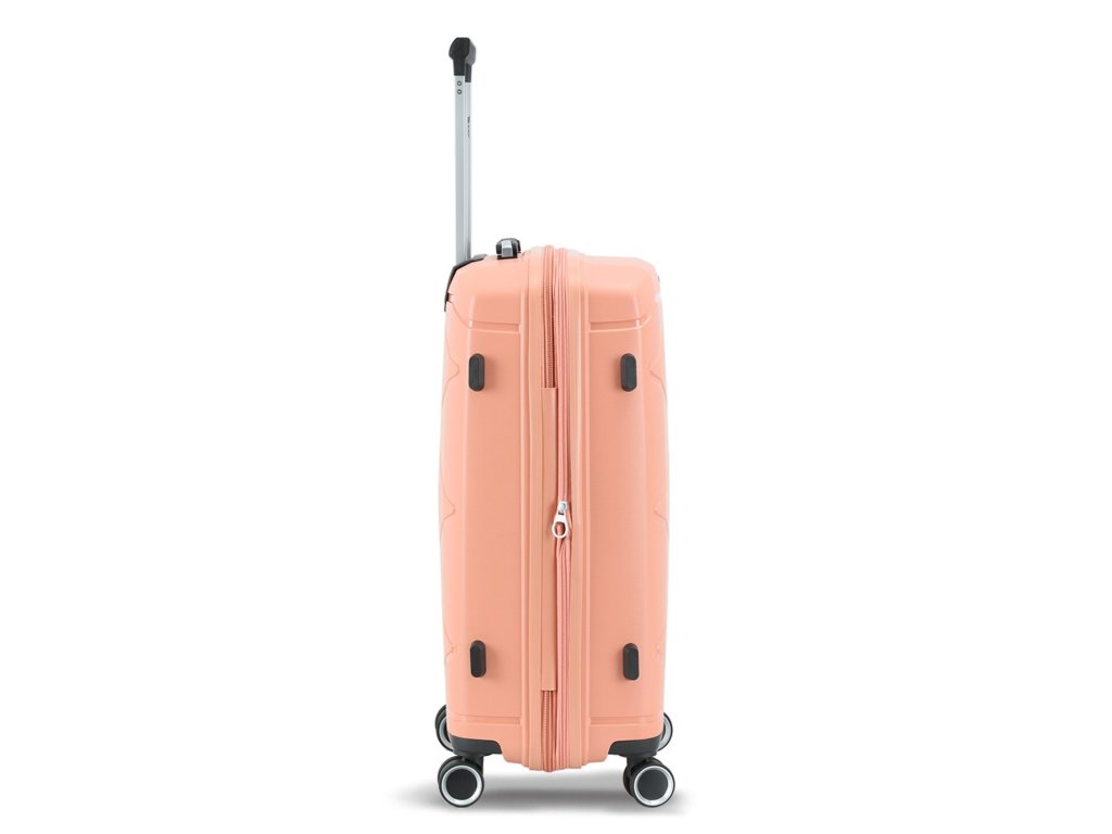 Cestovní kufr 75 cm francouzské značky Madisson ve zlato růžové barvě. Polypropylenový kufr Madisson nabízí hned řadu výhod, a to nízkou hmotnost, téměř nulovou rozbitnost, cenovou dostupnost pro každého, solidní zpracování a v neposlední řadě také elegantní a moderní drážkovaný vzhled.