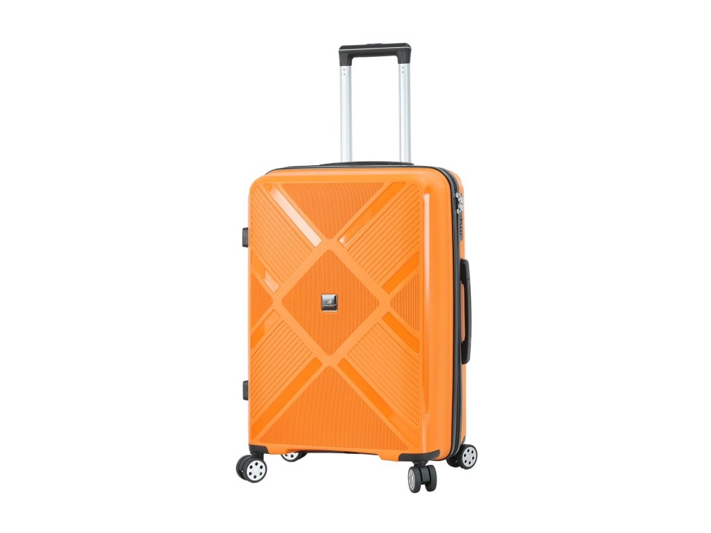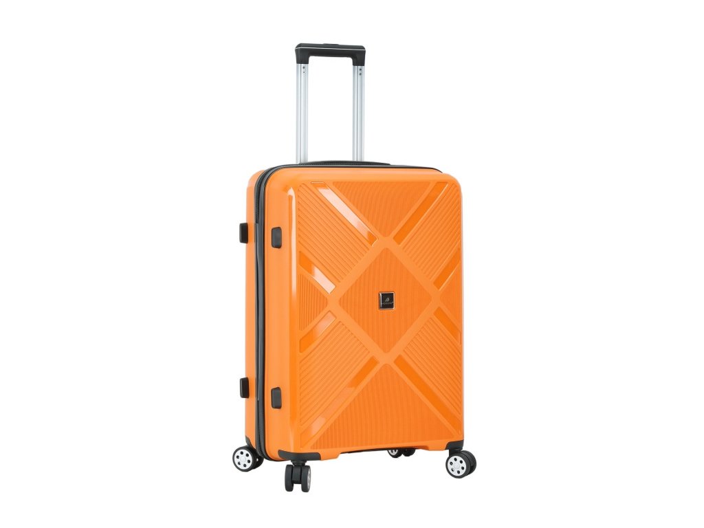 Cestovní kufr 66 cm francouzské značky Madisson v oranžové barvě. Polypropylenový kufr Madisson nabízí hned řadu výhod, a to nízkou hmotnost, téměř nulovou rozbitnost, cenovou dostupnost pro každého, solidní zpracování a v neposlední řadě také elegantní a moderní drážkovaný vzhled.