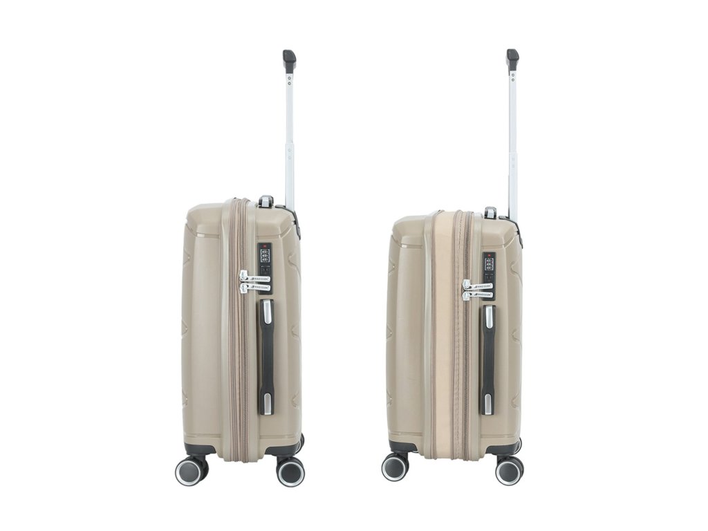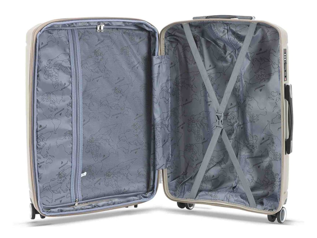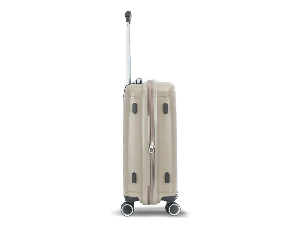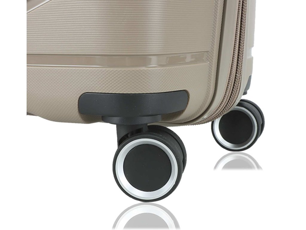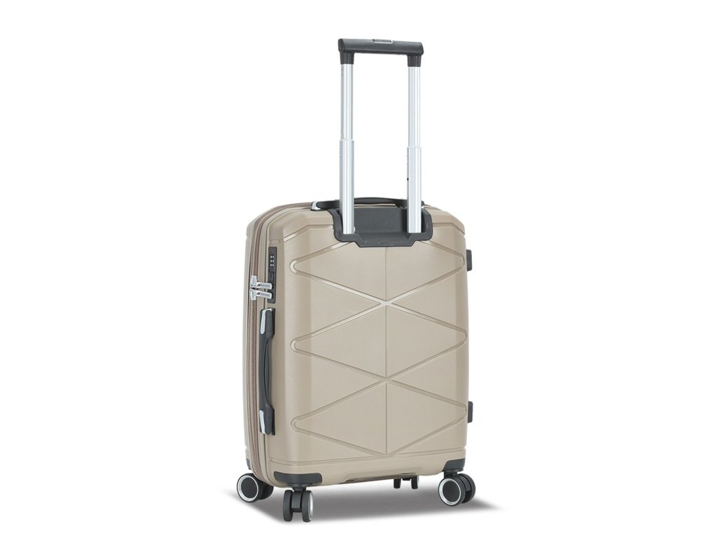 Cestovní kufr velikosti S francouzské značky Madisson v šampaňské barvě. Polypropylenový kufr Madisson nabízí hned řadu výhod, a to nízkou hmotnost, téměř nulovou rozbitnost, cenovou dostupnost pro každého, solidní zpracování a v neposlední řadě také elegantní a moderní drážkovaný vzhled.