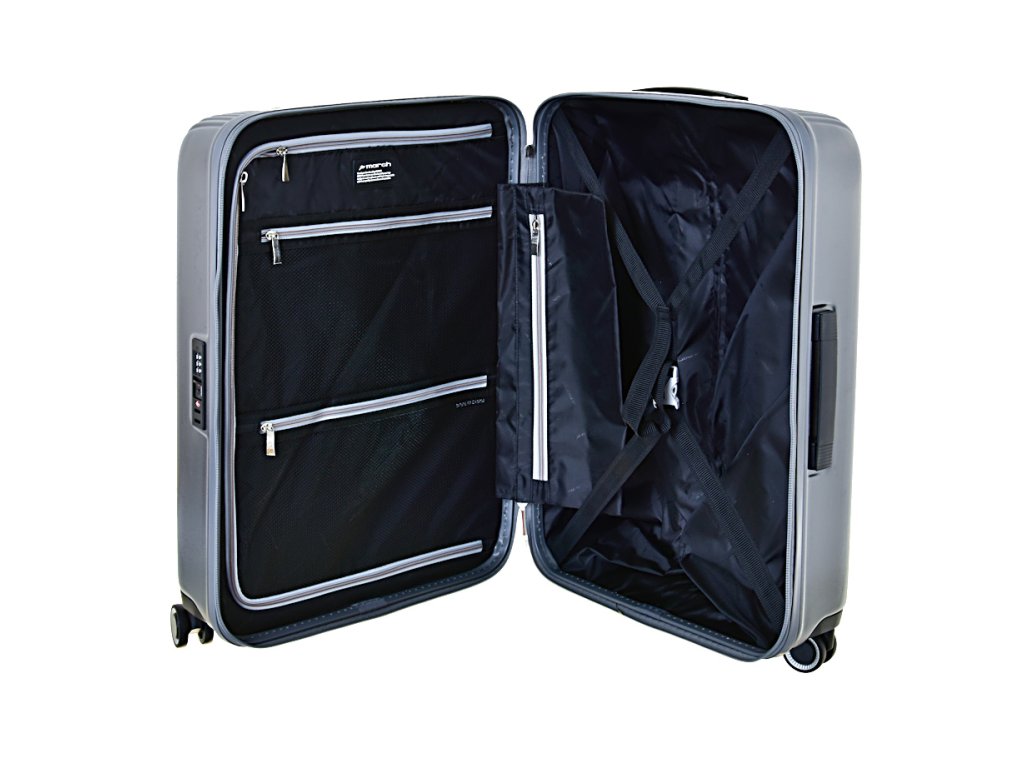 Středně velký plastový cestovní kufr značky March v antracitové metalické barvě. špičkové zpracování a kvalitní užité materiály , to jsou kufry značky March, které jsou mimo jiné pravidelně podrobovány různým testům. Také proto jsou na velmi vysoké úrovni ve své kategorii.