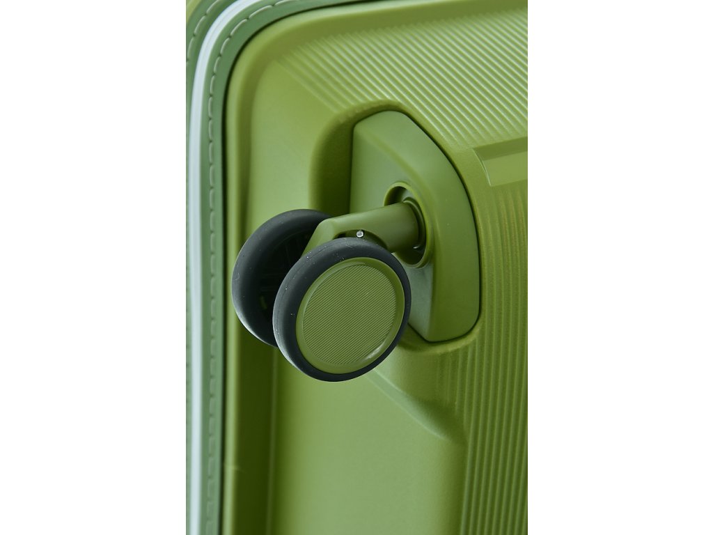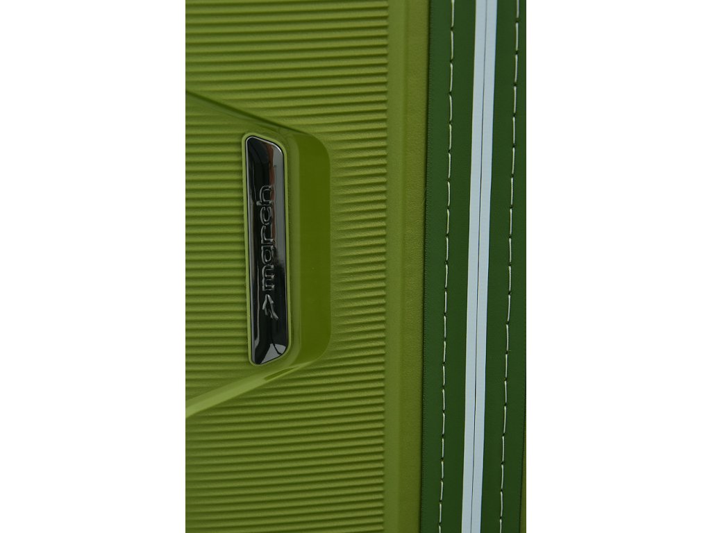 Cestovní kufr vyrobený ze 100% polypropylenu nizozemské značky March v atraktivní zelené barvě se stříbrným zipem. Polypropylen je plast, který kombinuje velkou odolnost a nízkou hmotnost. Polypropylen je téměř nezničitelný plastový materiál. Na vysoce kvalitní kufry March se můžete spolehnout.
