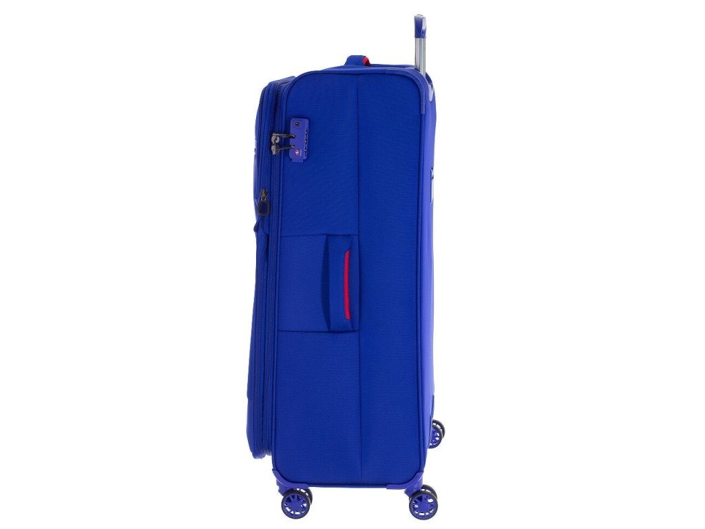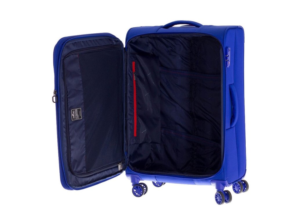 Moderní ultralehký cestovní textilní kufr 68 cm holandské značky march ze série easy v kobaltové světlejší modré barvě.- 4 dvoukolečka otočná o 360 stupňů.