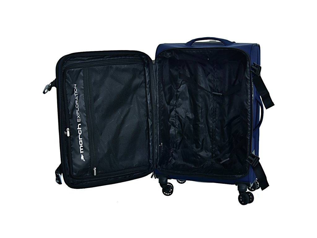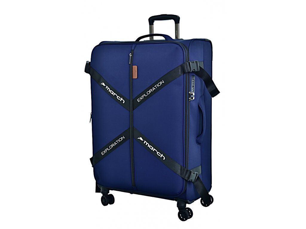 Nadčasově řešený textilní kufr značky March v modré barvě. Kufry značky March jsou pečlivě kontrolovány a testovány. Nabízejí také mimořádnou 5 letou záruku na své výrobky. Vybavte se stylově na cesty s kufry March, které jsou určeny i pro náročnější zákazníky.