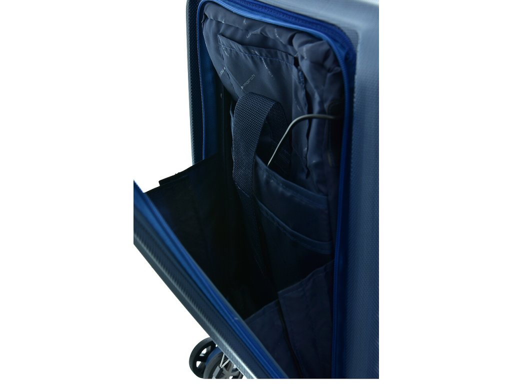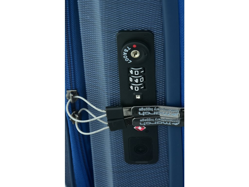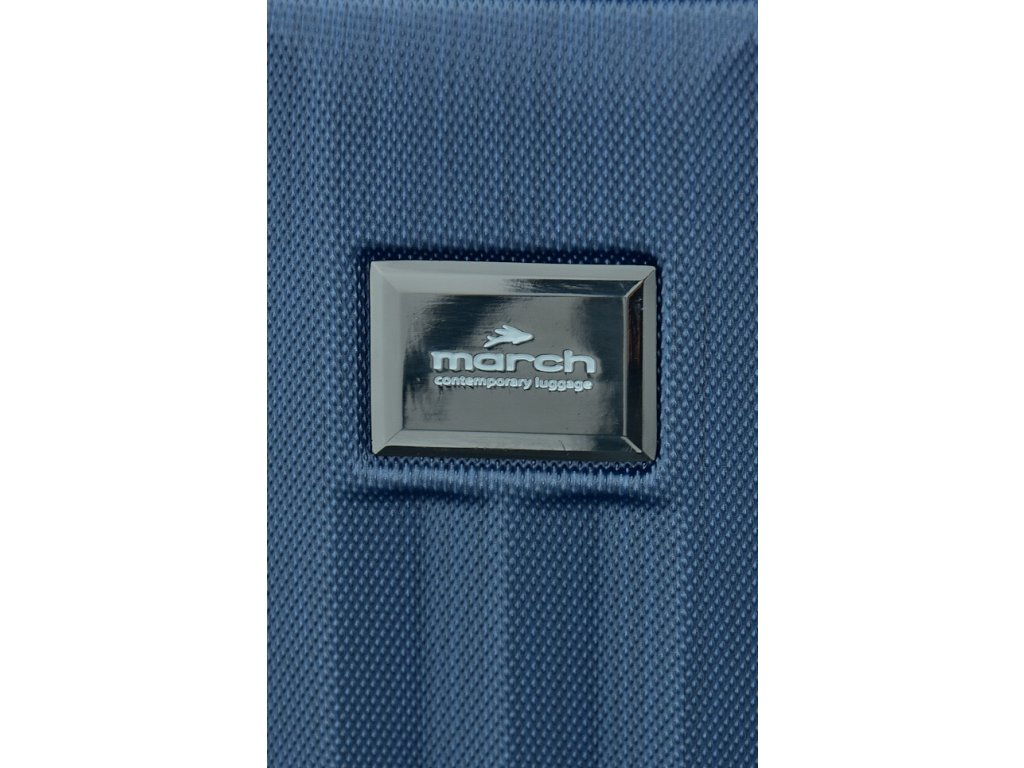 Cestovní skořepinový kufr nizozemské značky March v atraktivní modré barvě. Povrch kufrů série Fly je lesklé, luxusní diamantové textury. Tento povrch výrazně snižuje poškození během cestování. March poskytuje na své výrobky prodlouženou 5 letou záruku.