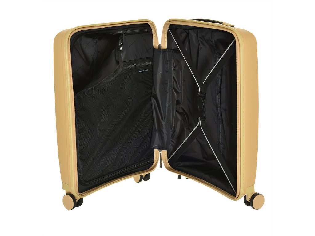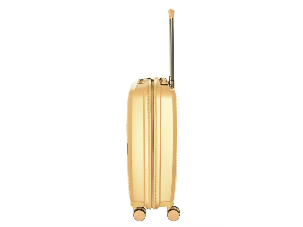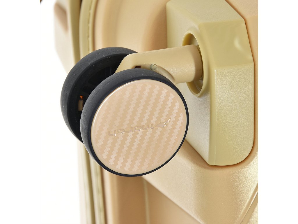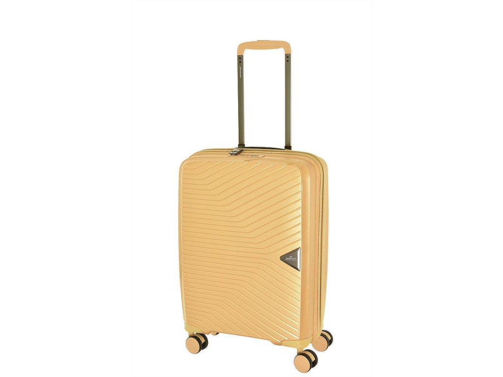 Čistě elegantní plastový kufr 55 cm holandské značky march ve zlaté metalické barvě linie gotthard s prolisy proužky.
