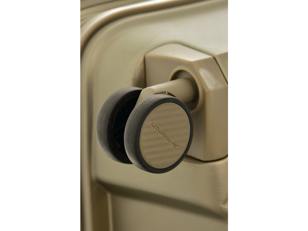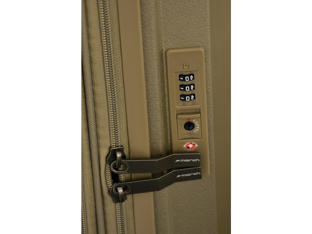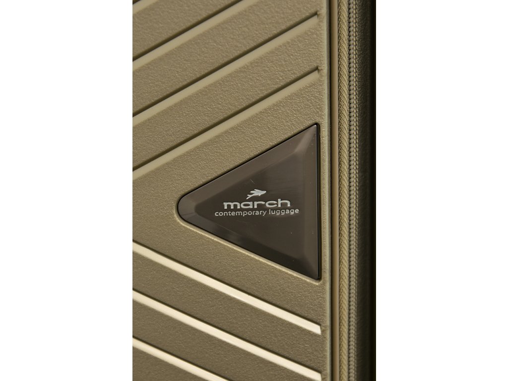 Polypropylenový cestovní kufr nizozemské značky March v atraktivní stříbrno-bronzové barvě. Elegantní vzhled se snoubí s kvalitními užitými materiály. čtyři velká otočná dvojkolečka zaručují dokonalé jízdní vlastnosti. Lehké a odolné zavazadlo s prodlouženou zárukou 5 let.
