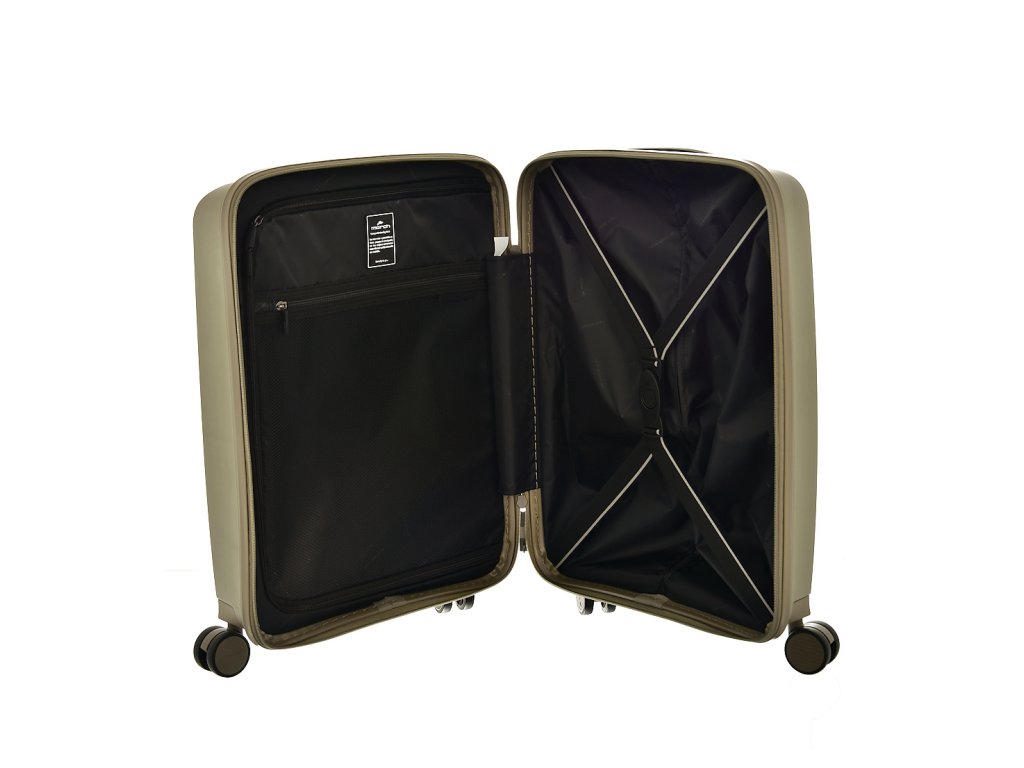 Polypropylenový cestovní kufr nizozemské značky March v atraktivní stříbrno-bronzové barvě. Elegantní vzhled se snoubí s kvalitními užitými materiály. čtyři velká otočná dvojkolečka zaručují dokonalé jízdní vlastnosti. Lehké a odolné zavazadlo s prodlouženou zárukou 5 let.