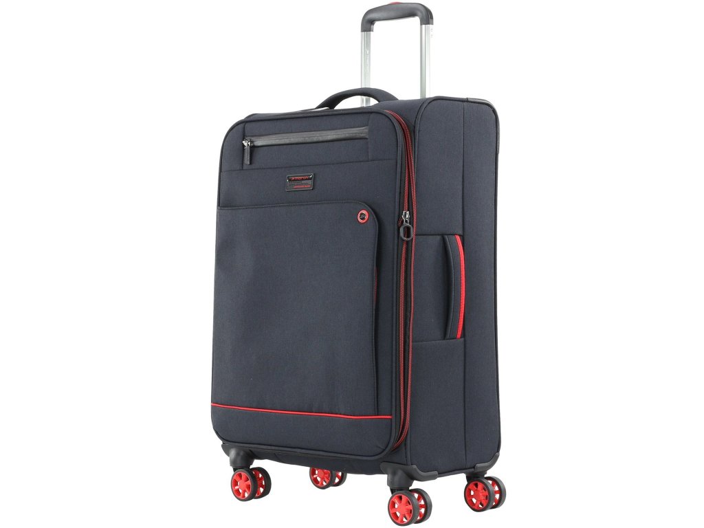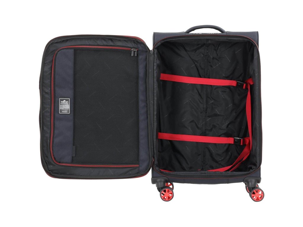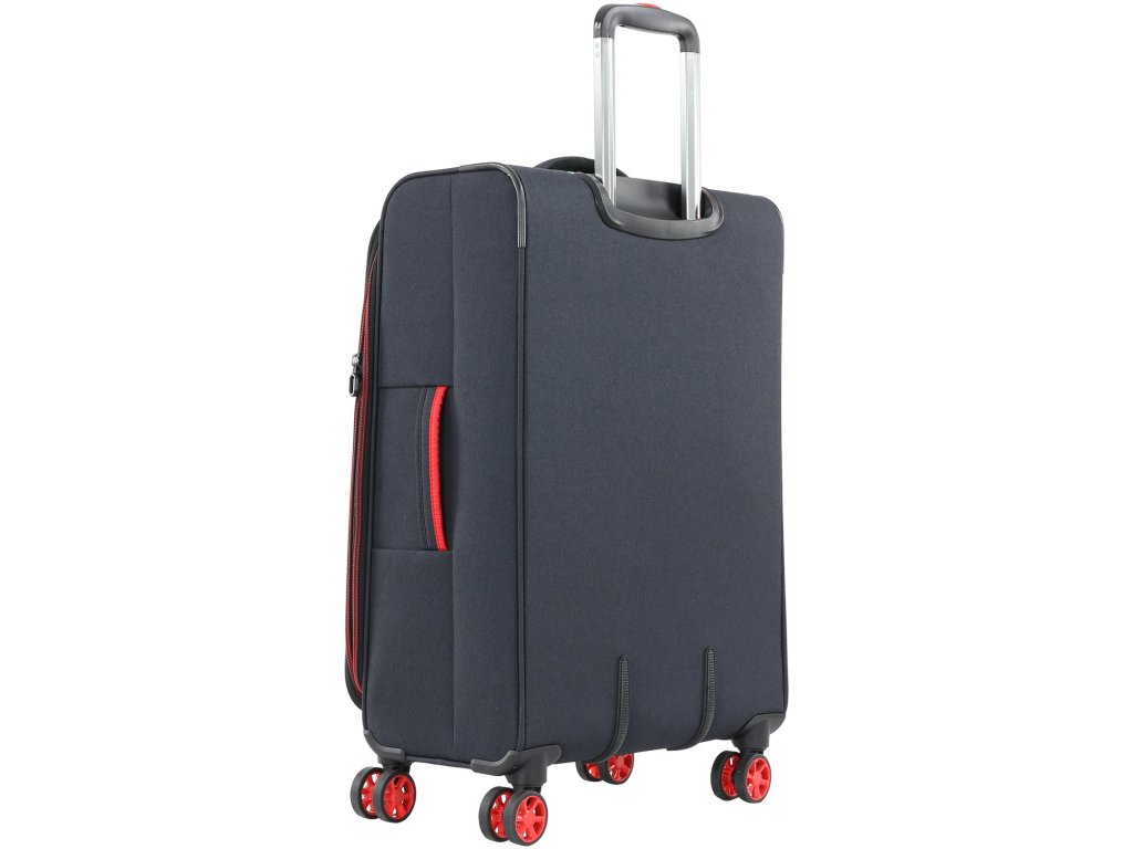 Cestovní textilní kufr 68 cm holandské značky march ze série shorttrack v černé barvě s detaily v červené.- 4 dvoukolečka otočná o 360 stupňů.