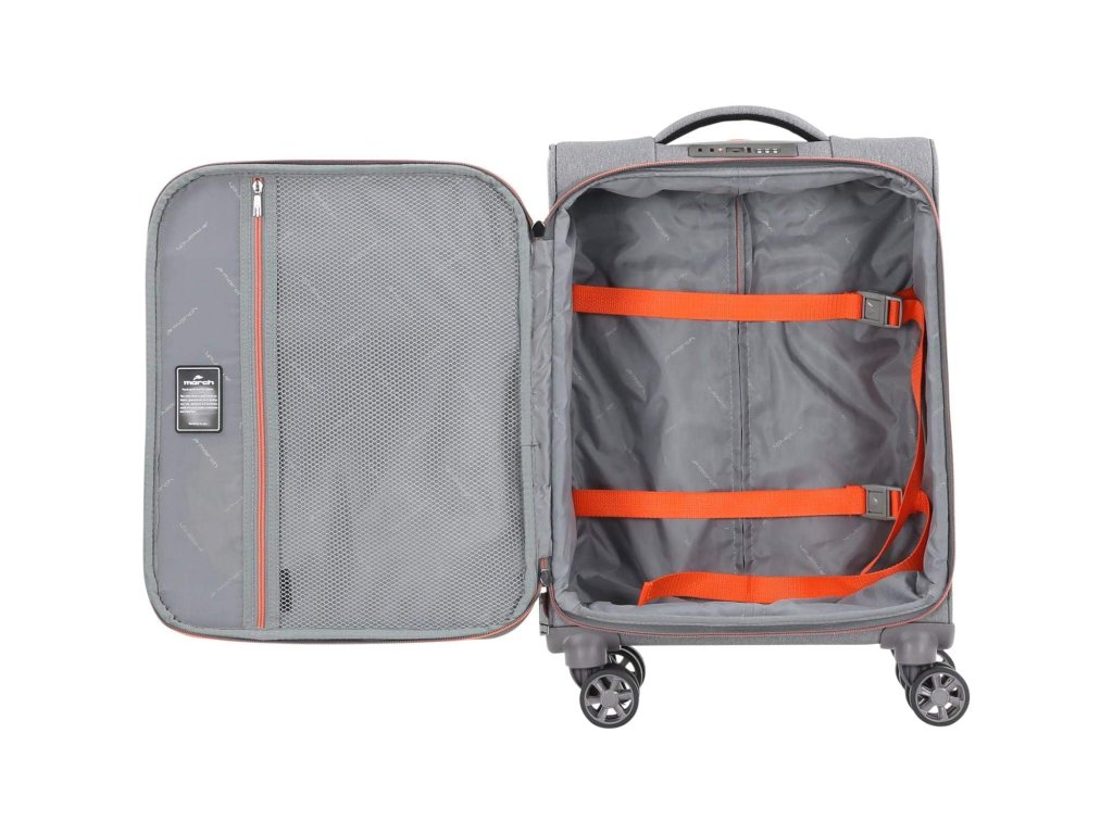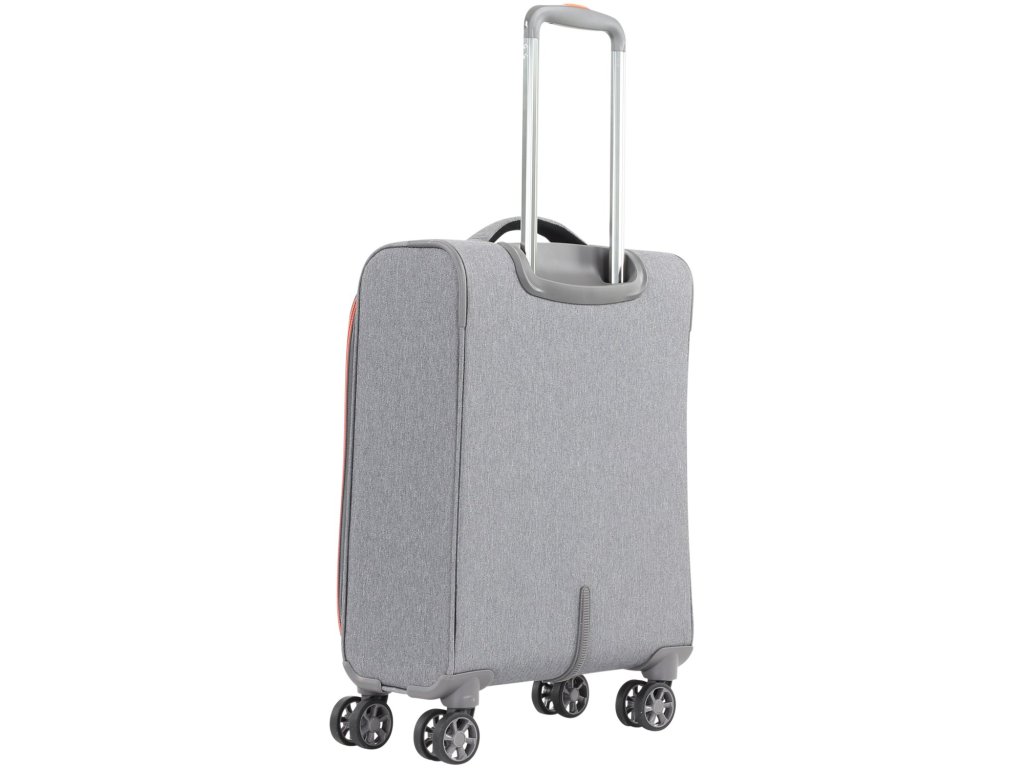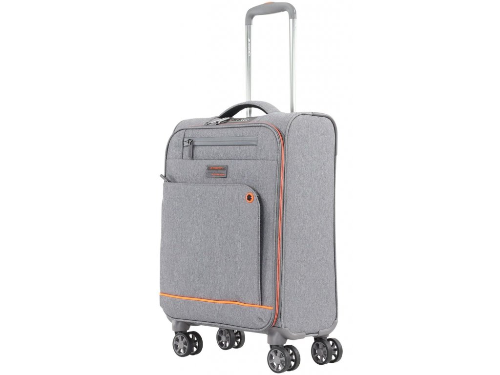 Cestovní textilní kufr 55 cm holandské značky march ze série shorttrack v šedé barvě s detaily v oranžové.- 4 dvoukolečka otočná o 360 stupňů.