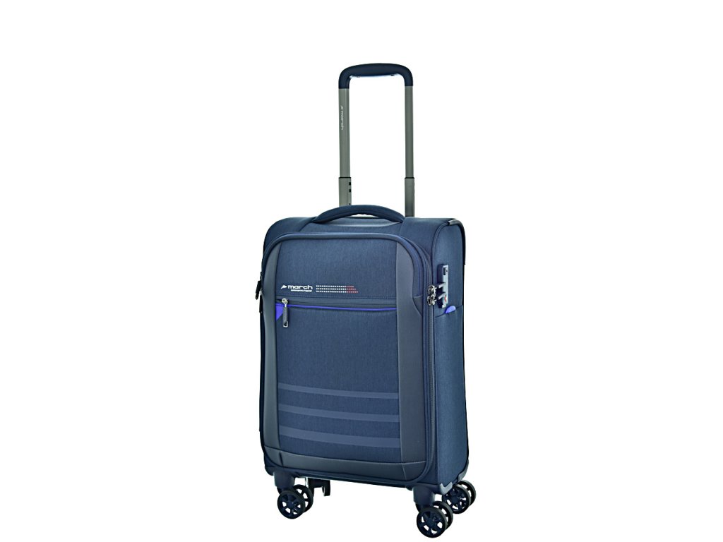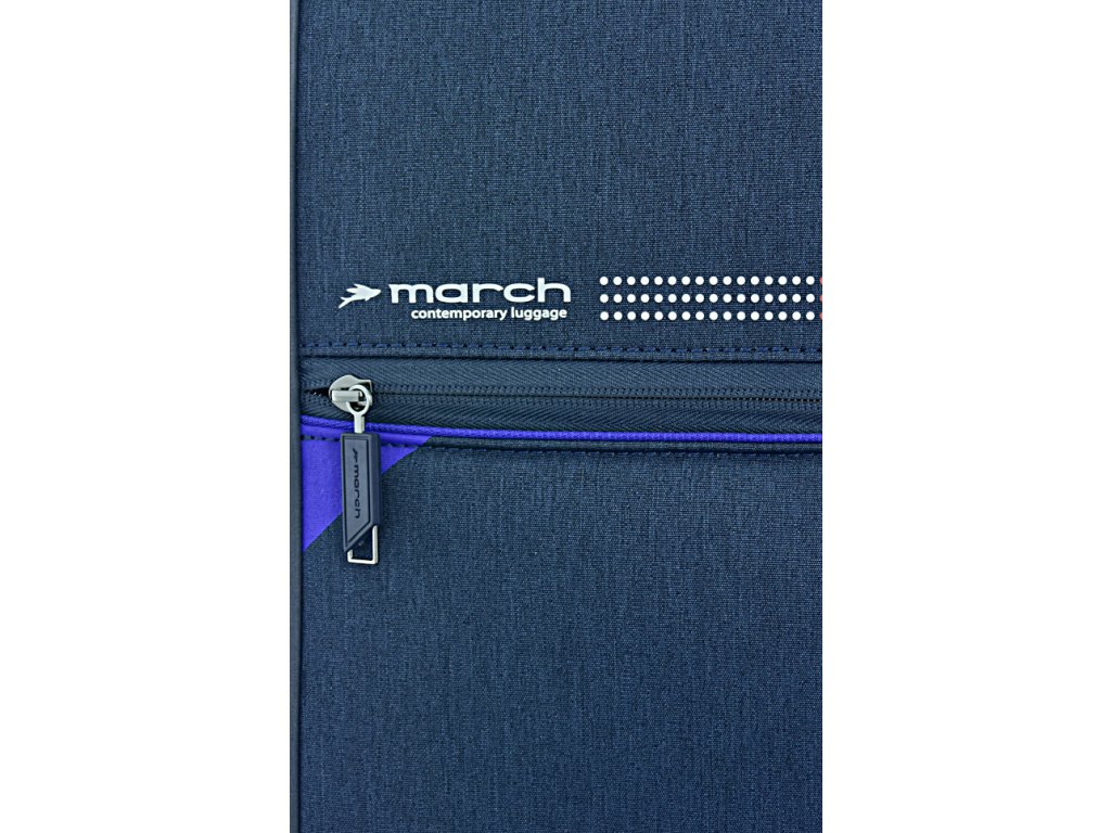 Cestovní textilní kufr značky March v atraktivní modré barvě. Vydejte se na cesty stylově s moderními kufry March! Kvalitní zpracování a maximální spolehlivost dělají z těchto textilních zavazadel jedny z nejlepších ve své kategorii.