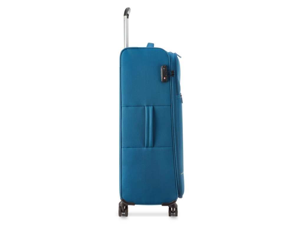 Velký cestovní kufr Modo by Roncato Eclipse 2.0 ve světle modré barvě. Pokud hledáte eleganci, funkčnost a bezpečnost, pak je Modo by Roncato Eclipse 2.0 tím pravým výběrem! Tento elegantní kufr v sobě skrývá mnoho prostoru, což ocení zejména aktivnější cestovatelé. Tento látkový kufr je vyroben z prvotřídního 100% polyesteru, který zaručuje dlouhou životnost a odolnost vůči každodennímu opotřebení.