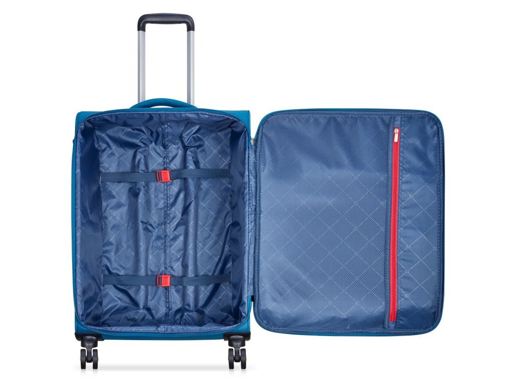 Střední cestovní kufr Modo by Roncato Eclipse 2.0 ve světle modré barvě. Pokud hledáte eleganci, funkčnost a bezpečnost, pak je Modo by Roncato Eclipse 2.0 tím pravým výběrem! Tento elegantní kufr v sobě skrývá mnoho prostoru, což ocení zejména aktivnější cestovatelé. Tento látkový kufr je vyroben z prvotřídního 100% polyesteru, který zaručuje dlouhou životnost a odolnost vůči každodennímu opotřebení.
