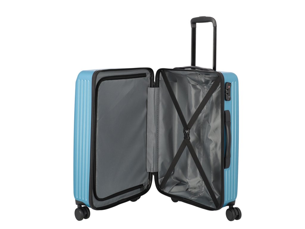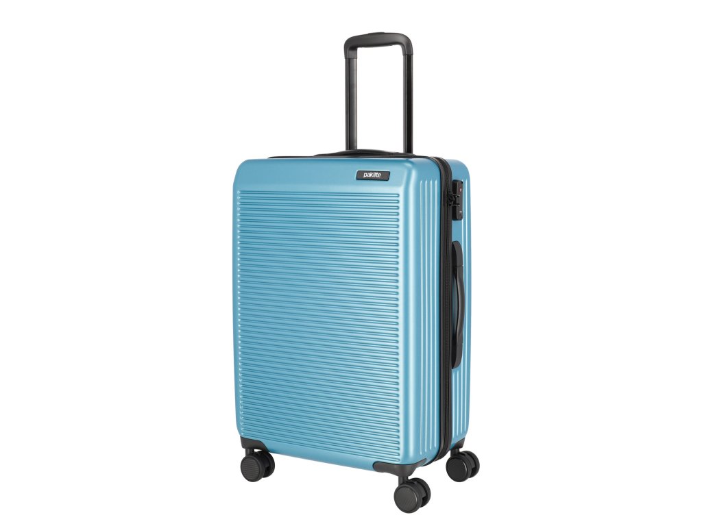 Plastový kufr Paklite Sienna 67 cm na čtyřech dvou kolečkách z distribuce německé značky Travelite ve světle modré barvě. Solidní kufr z odolného plastu za rozumnou cenu v unisex designu.