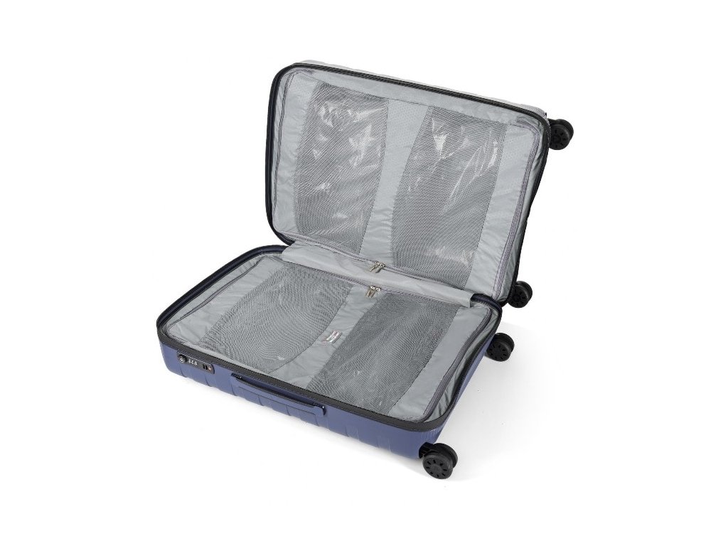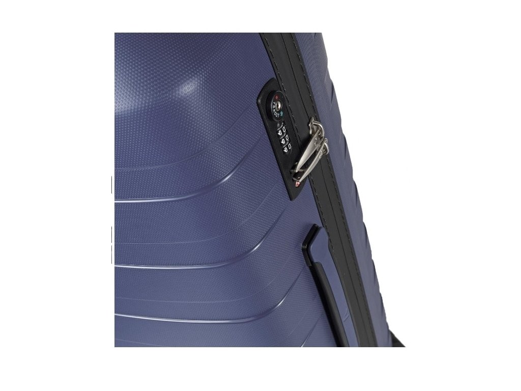 Luxusní designový ultralehký plastový cestovní kufr 69 cm s prolisy v modré barvě italské značky roncato ze série box.