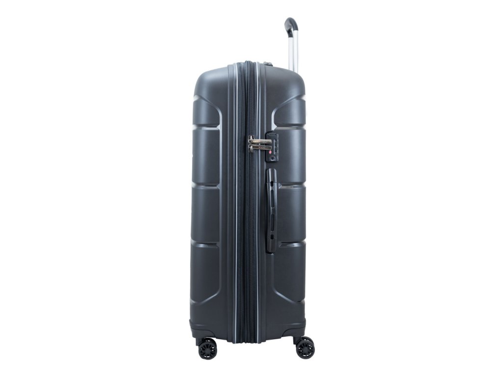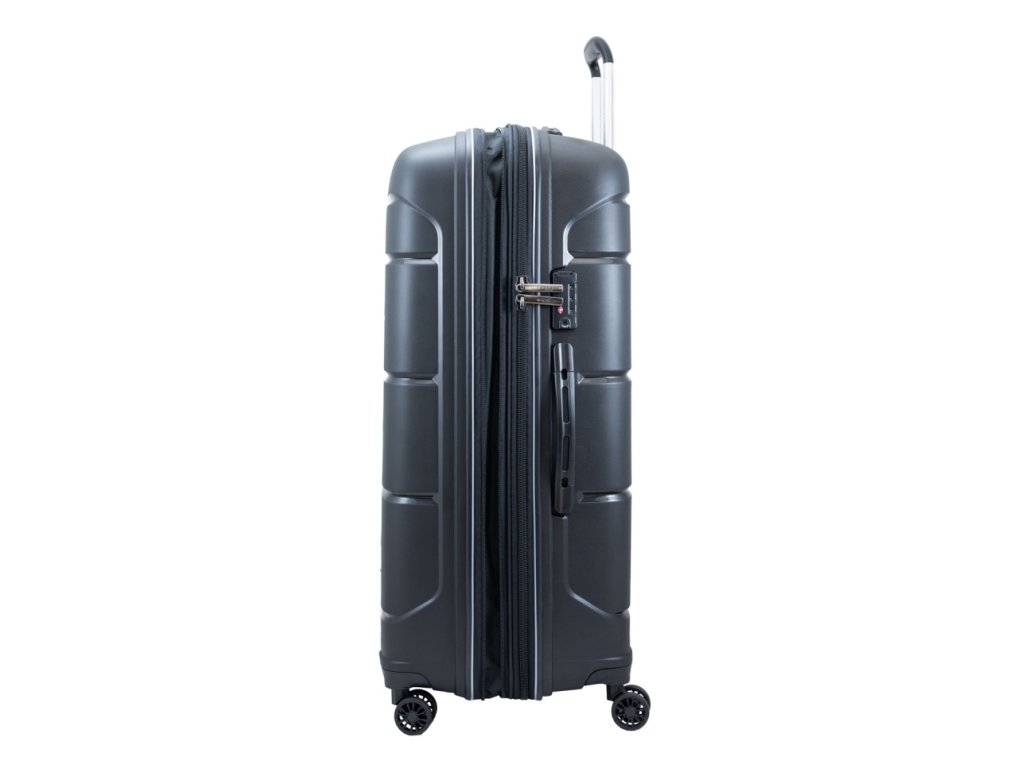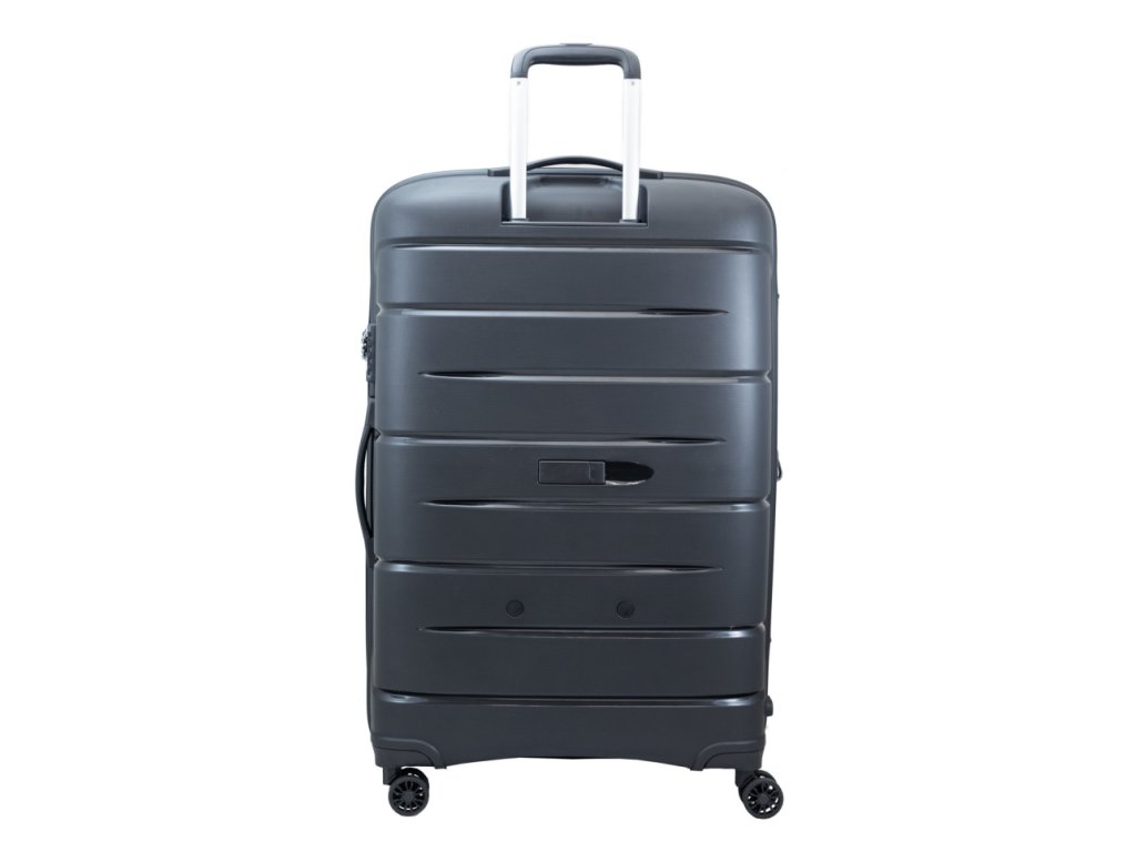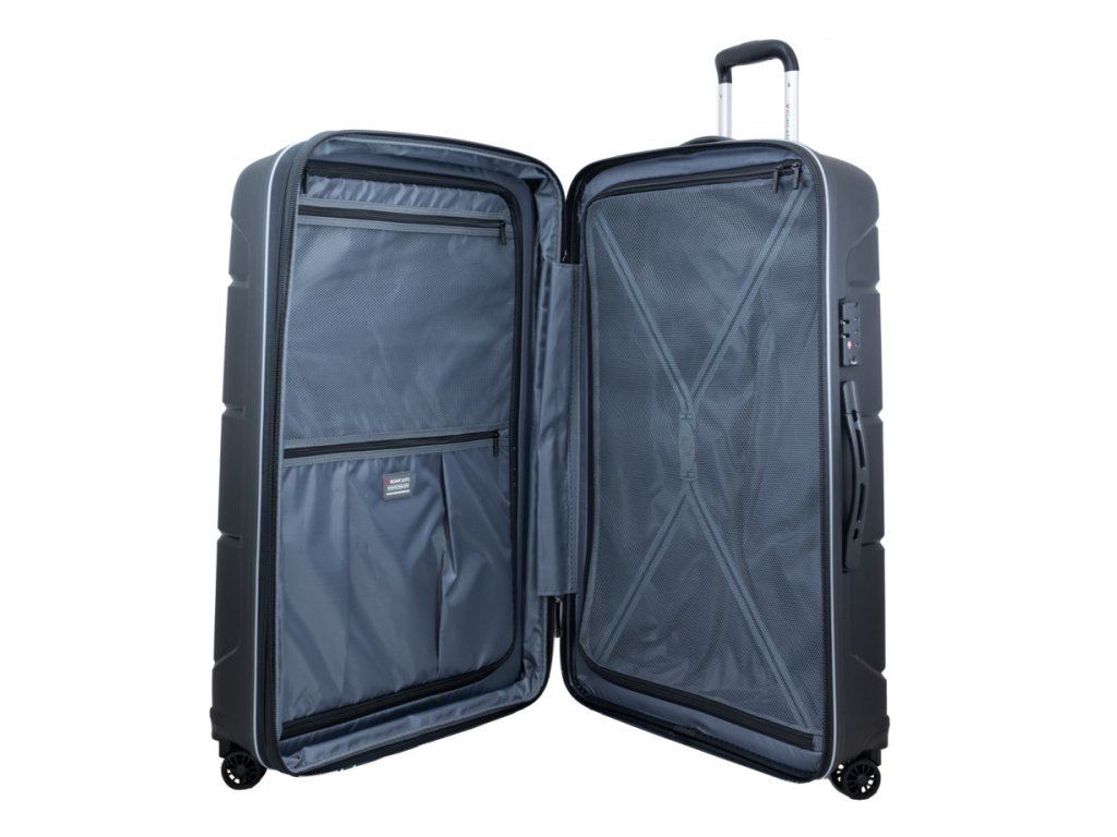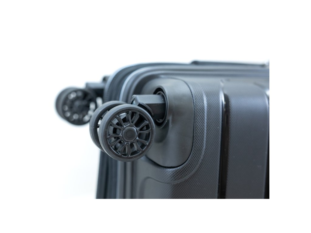 Cestovní skořepinový kufr italské značky Roncato v oblíbené černé barvě. Povrch kufru je rezistentní proti vodě a díky technologii high schock také vůči nárazu. Polypropylen je lehký a pružný materiál.