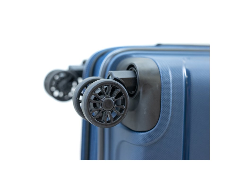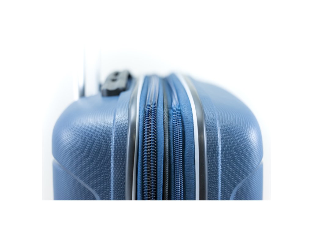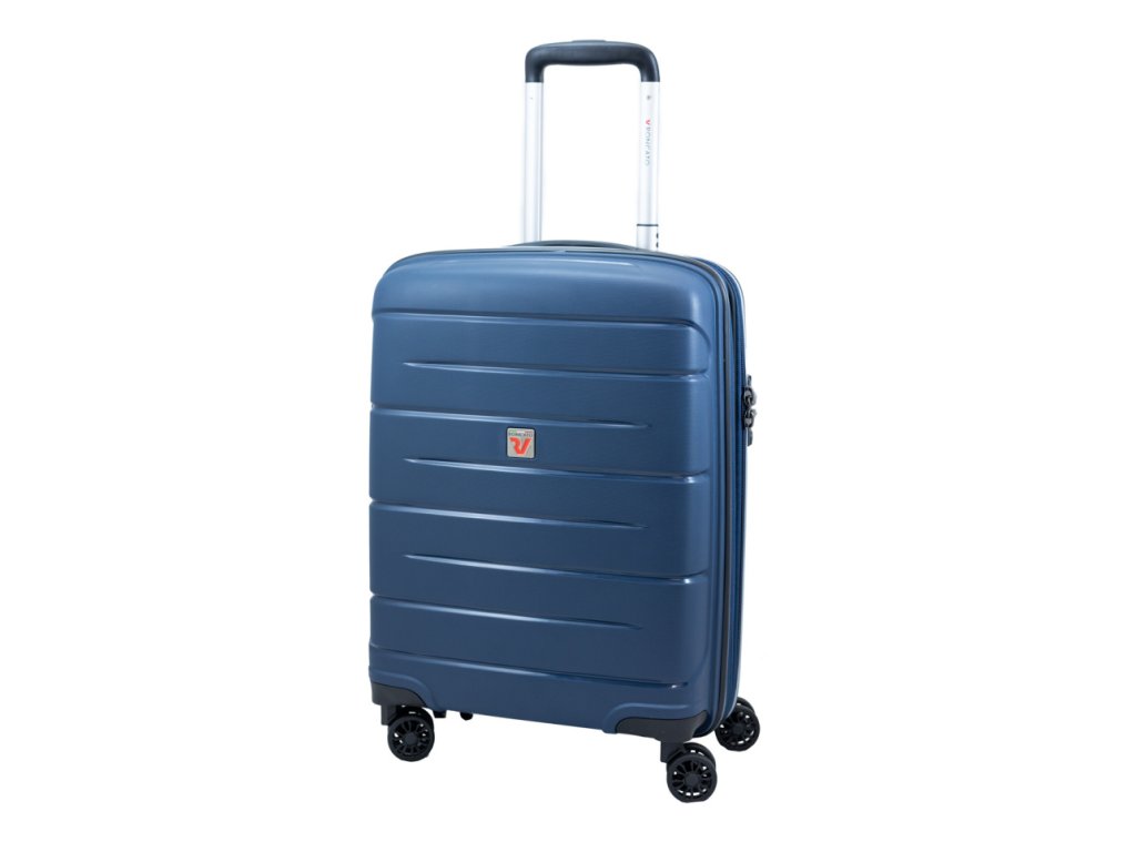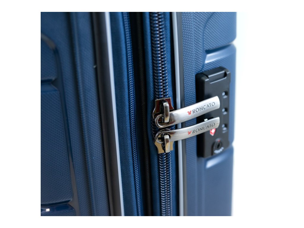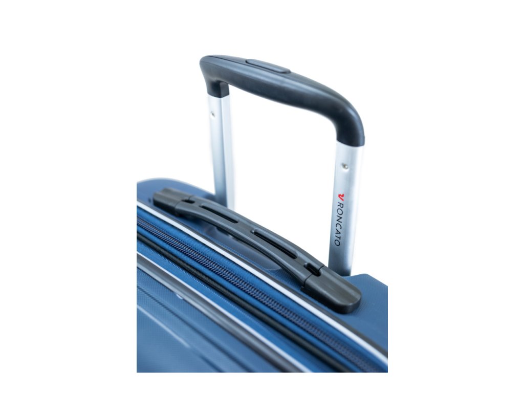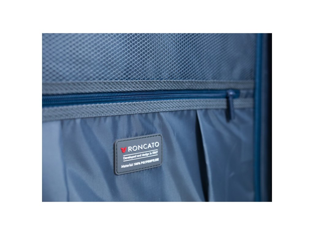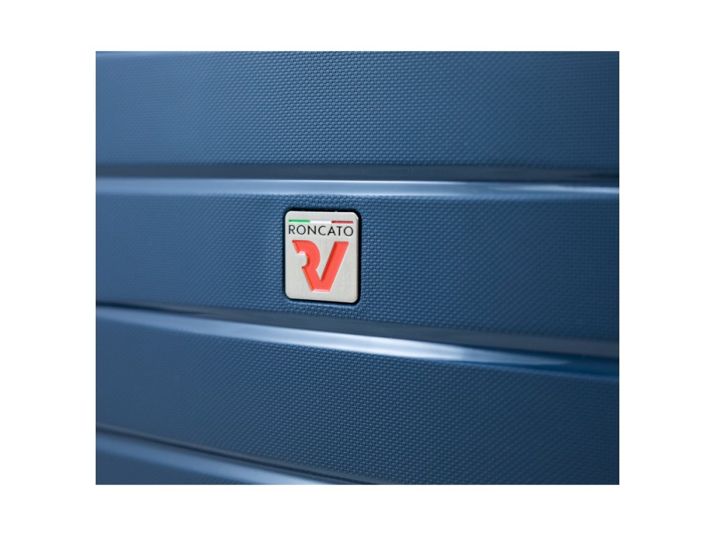 Cestovní skořepinový kufr italské značky Roncato v atraktivní modré barvě. Povrch kufru je rezistentní proti vodě a díky technologii high schock také vůči nárazu. Polypropylen je lehký a pružný materiál.