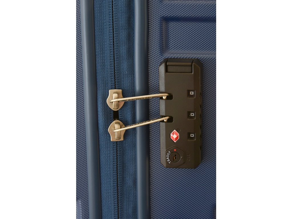 - Zabudovaný kombinační tsa zámek na boku kufru.