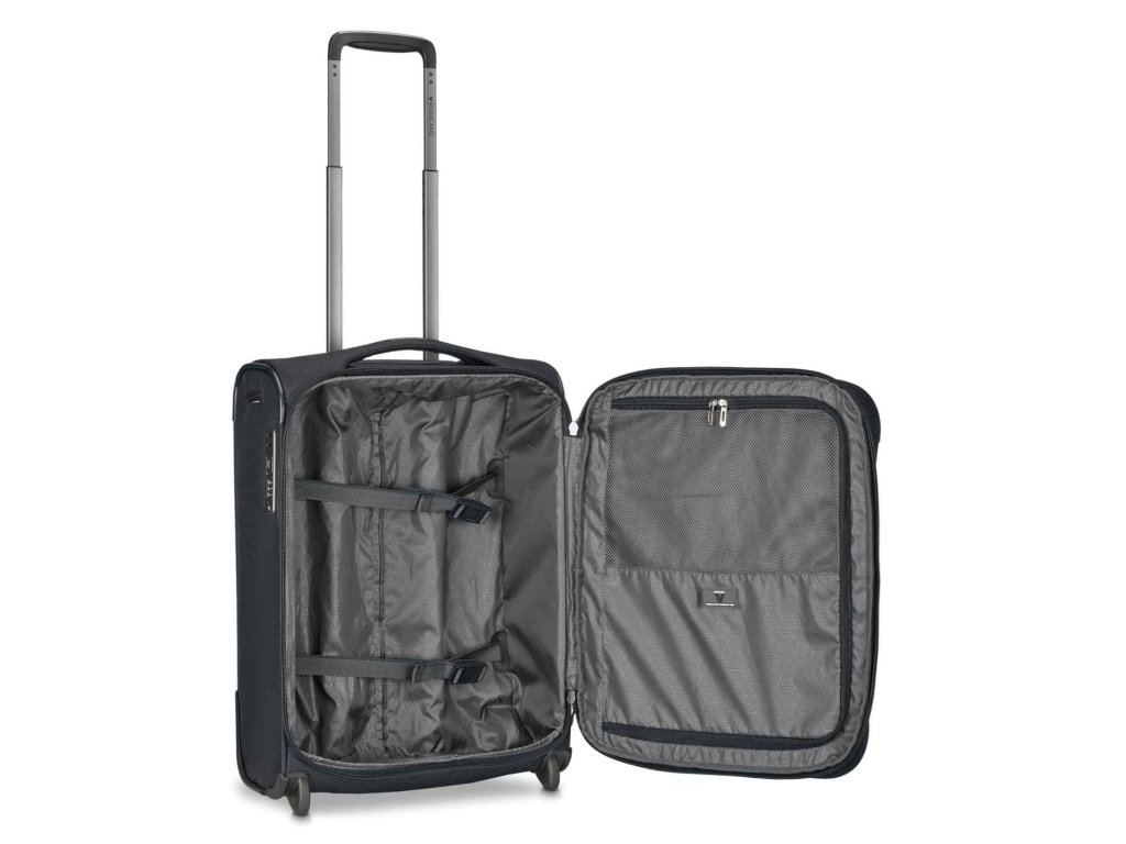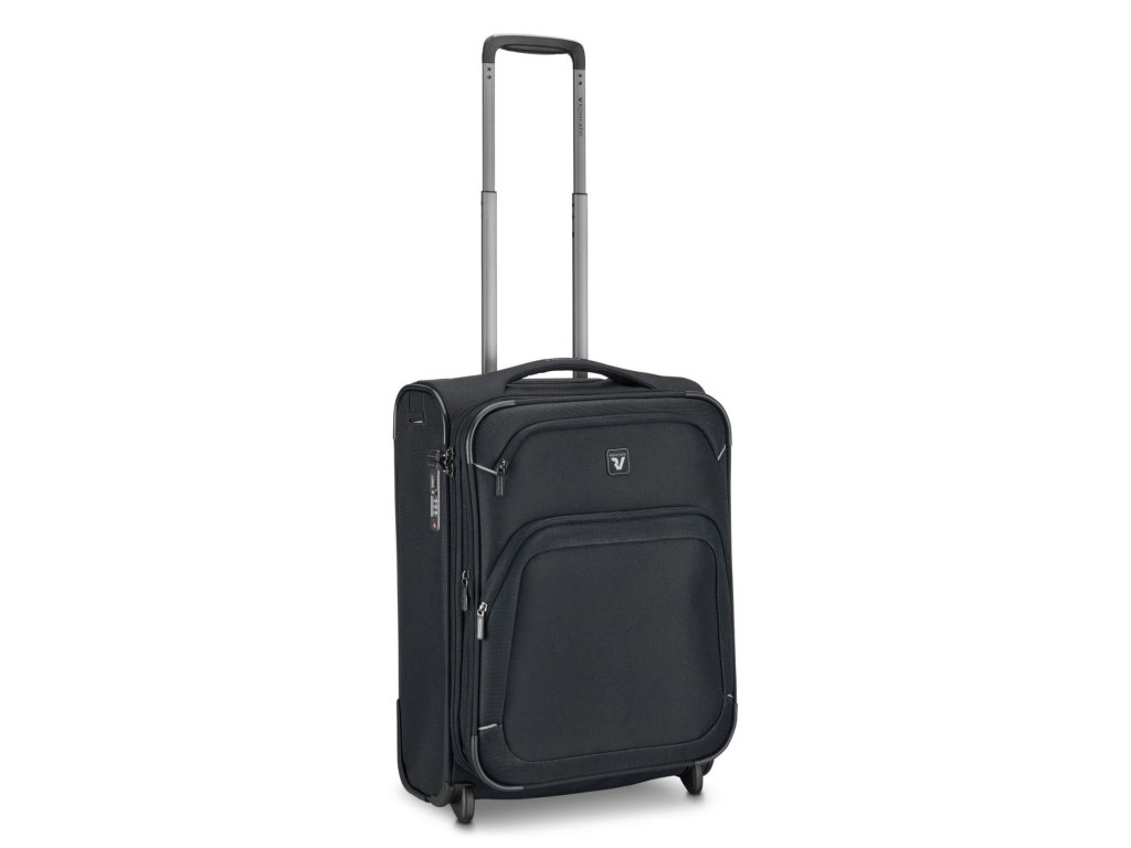 Textilní cestovní kufr 55 cm se čtyřmi kolečky italské značky Roncato série Gateway v oblíbené černé barvě. Gateway je nová kolekce měkkých kufrů od značky Valigeria Roncato, která spojuje moderní design s výjimečnou funkčností. Tato řada je určena pro všechny, kdo chtějí cestovat bez kompromisů – lehké a dobře uspořádané zavazadla jsou připravena splnit veškeré vaše potřeby. Každý kufr je vybaven bezpečnostním zipem High Security Zipper s ochranou proti vniknutí, který zajišťuje maximální bezpečí vašich osobních věcí. Dvojitá kolečka, zapuštěná pro větší stabilitu, umožňují hladký pohyb i v těch nejrušnějších místech. Ergonomická madla zajišťují pohodlné přenášení a pevný TSA zámek s trojkombinací přináší klid při letištních kontrolách, zejména při cestách do USA. Zavazadla jsou vyrobena z odolné polyesterové tkaniny typu Jacquard, která je nejen praktická, ale i stylová – každý výlet se tak stává módním zážitkem.