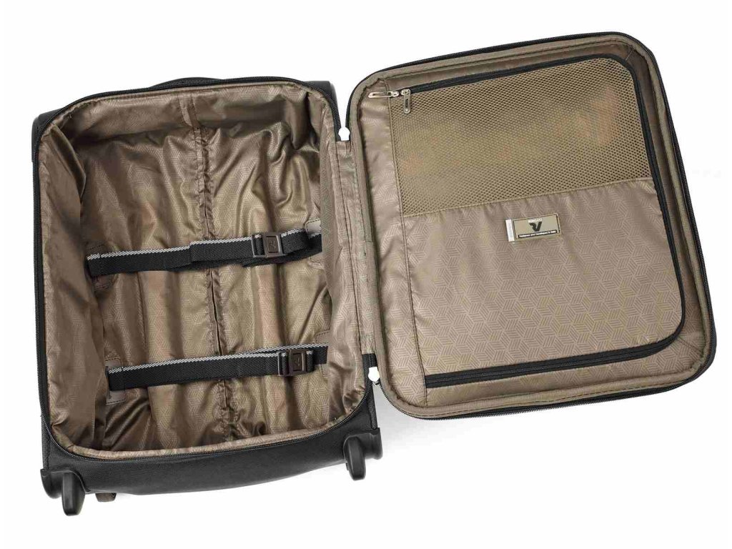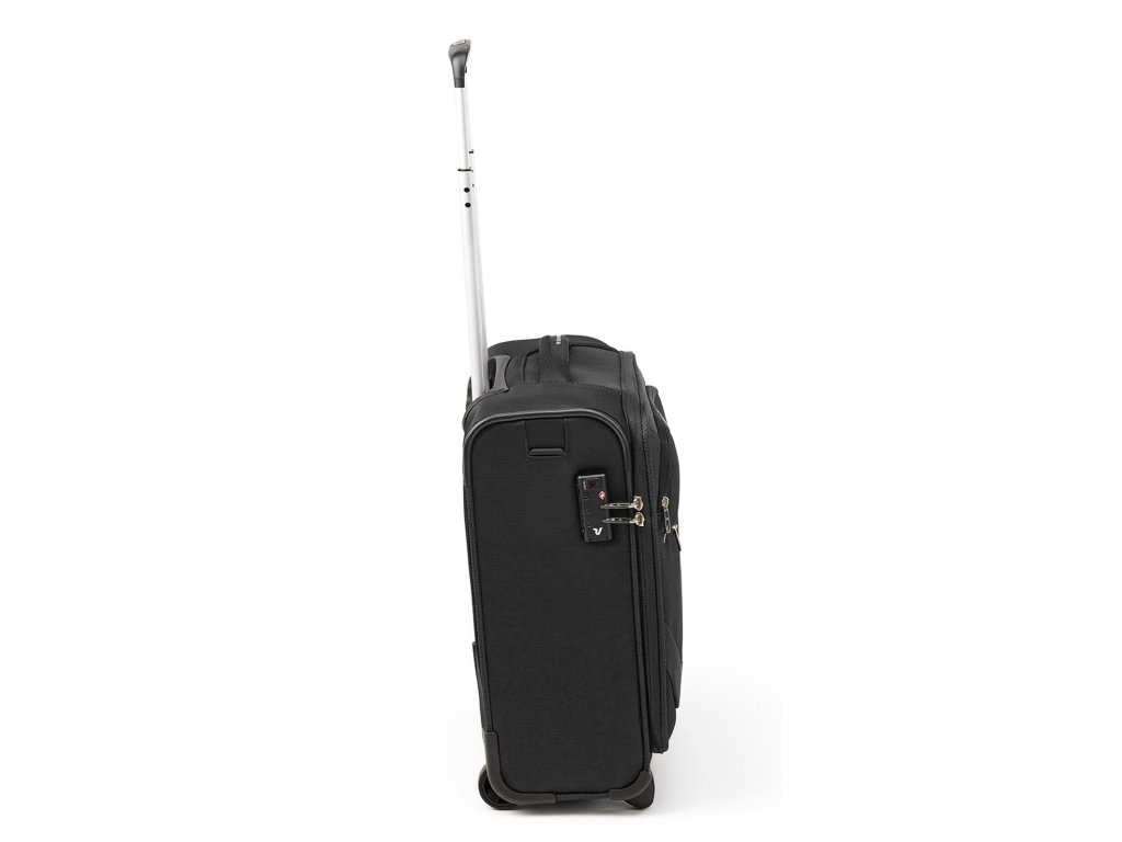 Textilní cestovní kufr italské značky Roncato v oblíbené černé barvě. Kufr je vyroben z velmi kvalitního materiálu nylon, který je odolný proti oděru a zabraňuje tak poškození kufru. Tento kvalitní textilní kurf vyhovuje parametrům švýcarské nízkonákladové letecké společnosti EASYJET. Toto palubní zavazadlo si můžete vzít s sebou do letadla a vejde se pod sedadlo před vámi, jak vyžaduje společnost EASYJET.