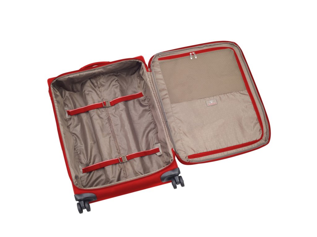 Textilní cestovní kufr se čtyřmi kolečky italské značky Roncato v atraktivní červené barvě. Kufr je vyroben z velmi kvalitního materiálu nylon, který je odolný proti oděru a zabraňuje tak poškození kufru. Kolečka jsou tichá, otočná o 360 stupňů a spolehlivá na jakémkoli povrchu.