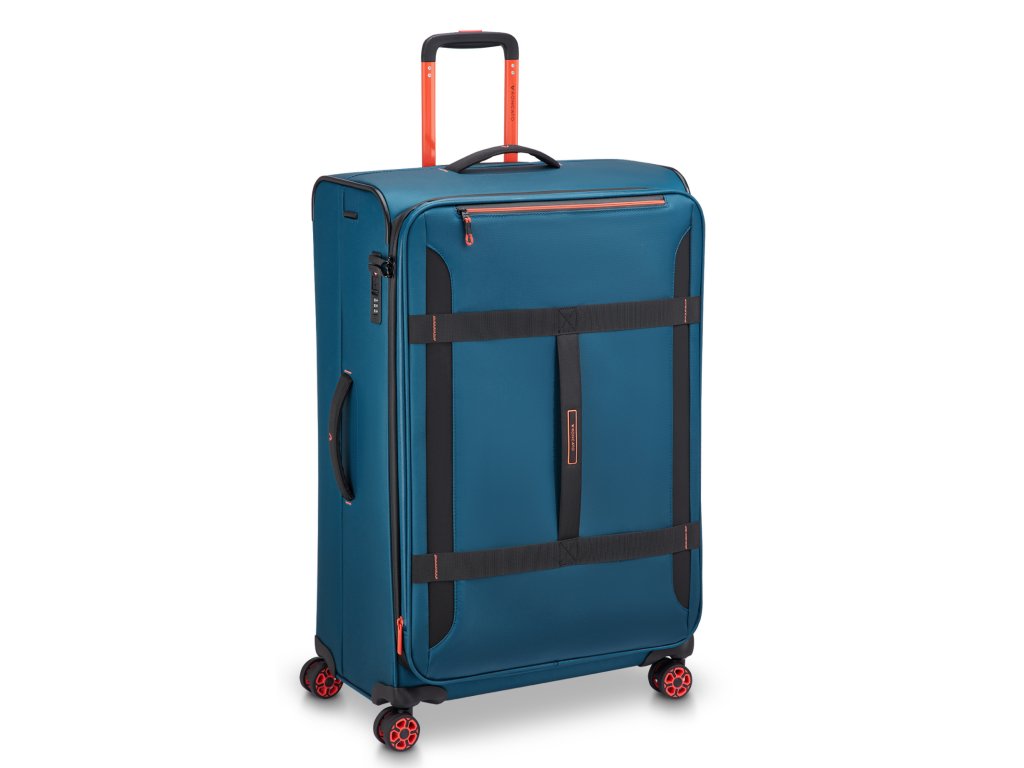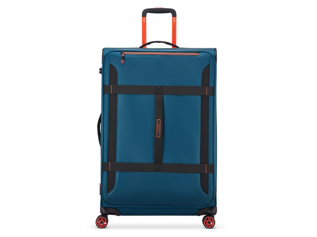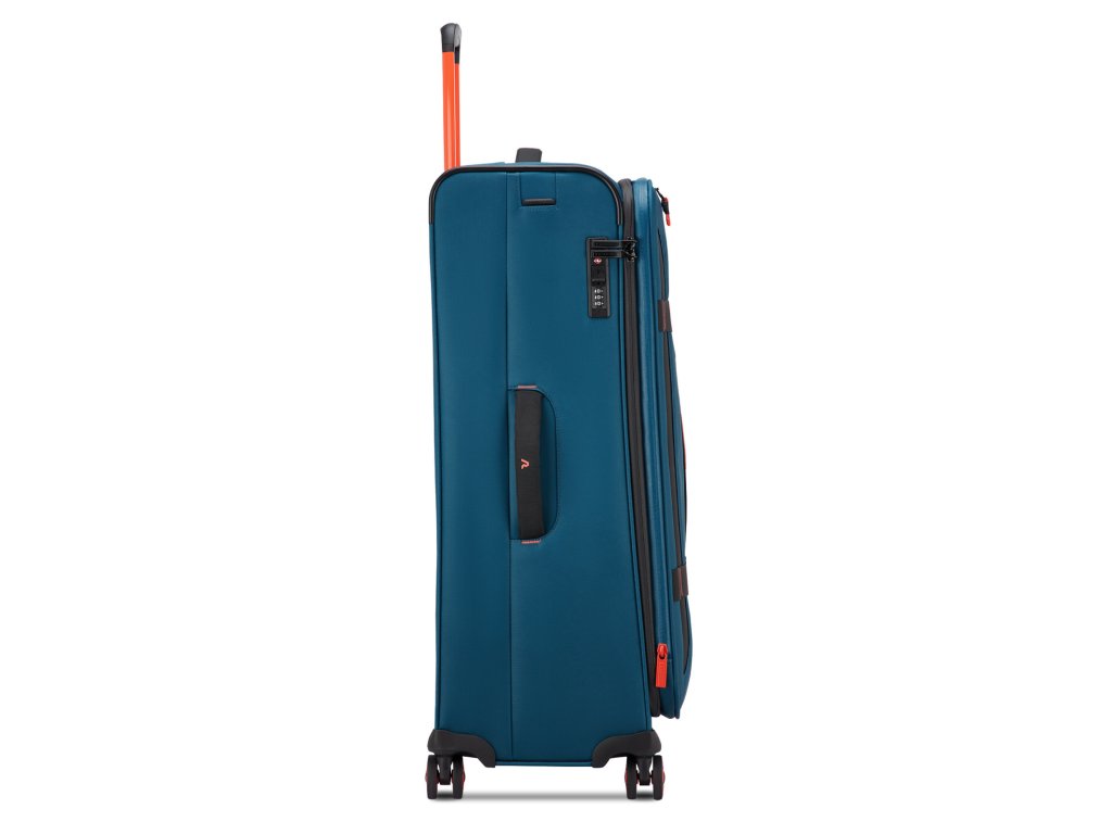 Cestovní textilní kufr 77 cm italské značky Roncato série Norway v modré barvě s červenými doplňky. Nová kolekce Norway je navržena pro ty, kteří milují cestování, aniž by se vzdali charakteru a funkčnosti, a spojuje městskou inspiraci s outdoorovým duchem. Norway je všestranná, mladistvá a dynamická kolekce ideální pro ty, kteří hledají flexibilitu, praktičnost a ležérní, ale zároveň rafinovaný styl – ideální pro každou cestu. Pro dynamické cestovatele mezi městem a přírodou. Ideální pro víkendové cesty, cestování letadlem, každodenní použití ve městě. Norway je kolekce vyrobená z voděodolného / vodoodpudivého materiálu se sportovním designem pro ty, kteří hledají všestrannost a odolnost na každé cestě.