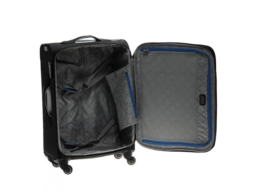 Cestovní elegantní textilní kufr 81 cm italské značky roncato v černé barvě.- Výsuvná hliníková trolley s aretací polohy.
