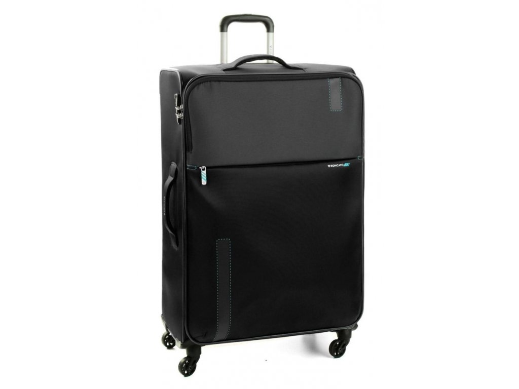 Velký cestovní kufr italské špičkové značky Roncato v černé barvě. Tento textilní kufr se hodí na kratší i delší cestování, ať už jedete na pracovní cestu nebo na dovolenou. čtyři tichá kolečka zaručují pohodlnou manipulaci a použité materiály jsou velmi kvalitní.