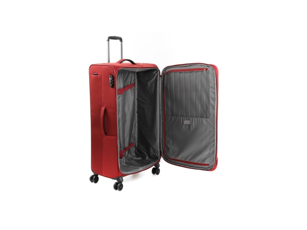 Precizně propracovaný cestovní kufr italské značky Roncato v červené barvě. Kuft disponuje velkým objemem, kvalitními užitými materiály, čtyřmi pohodlnými a spolehlivými dvojkolečky, a v neposlední řadě i elegantním vzhledem. Dopřejte si komfort na vašich cestách s tímto odlehčeným kufrem a proměňte povinnost v zábavu.