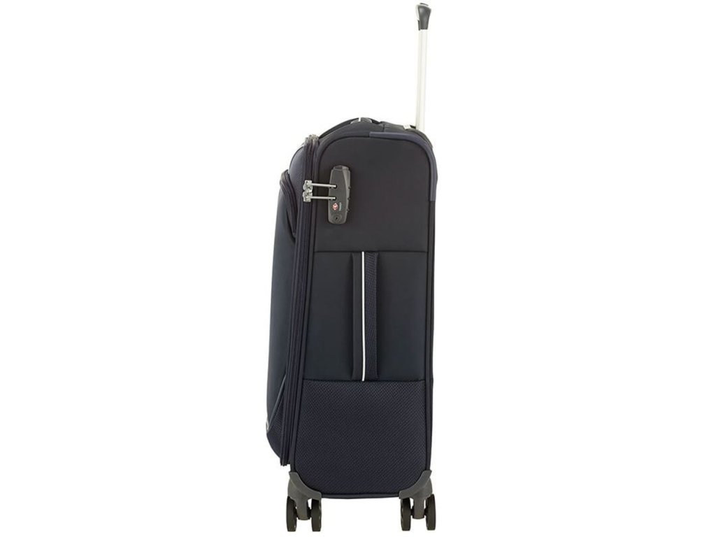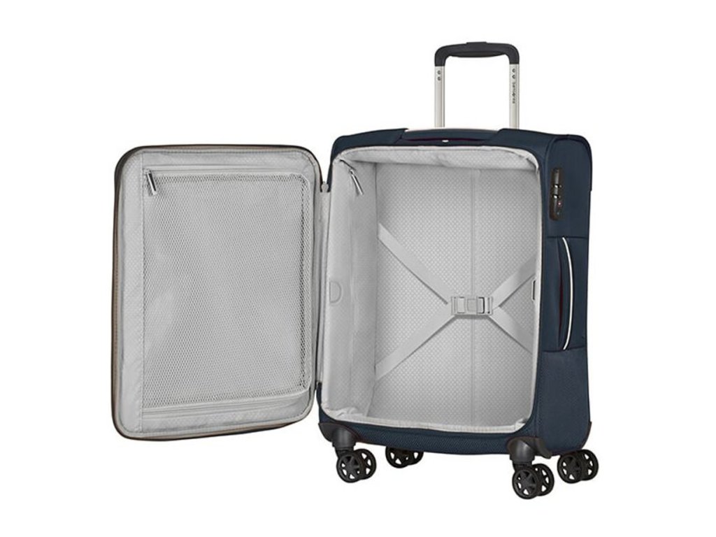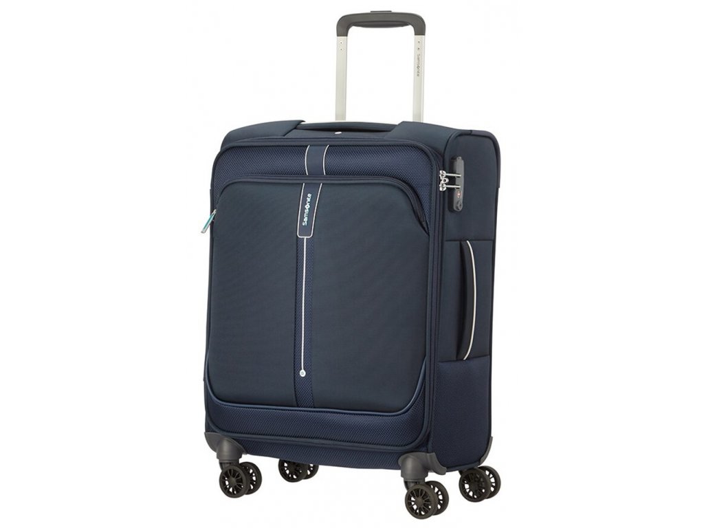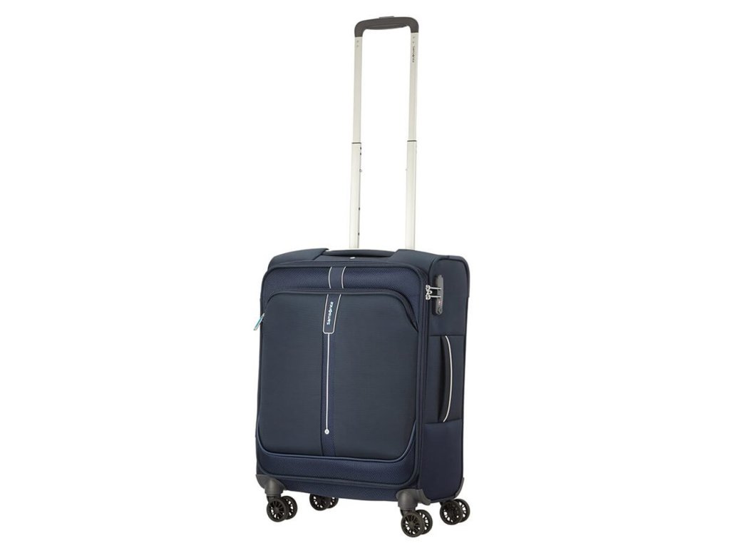 Cestovní kabinový kufr značky Samsonite Popsoda 55 cm v tmavší modré barvě na čtyřech kolečkách. Kolekci Popsoda od světoznáme značky Samsonite formují mladé, svěží a živé klíčové prvky. Vyznačuje se energickým moderním designem s použitím nápadných barevných detailů. Představuje praktičnost, kvalitu a díky ní držíte krok s nejnovějšími trendy.